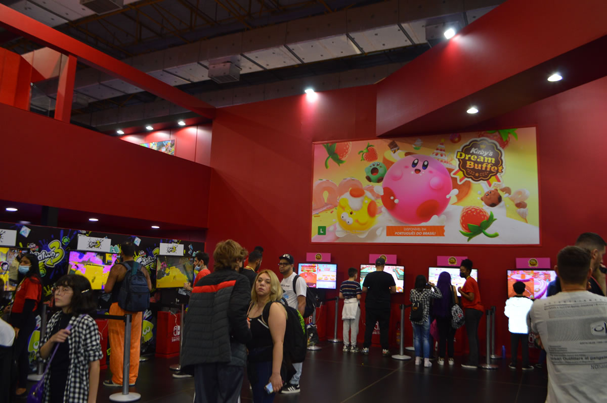 A fila para Mario Kart 8 Deluxe (de 2017), que estava lá com o jogo base e também a expansão DLC, não era nem um pouco pequena. Até mesmo The Legend of Zelda: Breath of the Wild estava por lá e tinha fila. Claro que os lançamentos mais recentes do Switch marcaram presença, como Metroid Dread, Kirby’s Dream Buffet, Kirby and the Forgotten Land e, claro, Splatoon 3, cuja a fila também era digna de ser notada até mesmo fora do estande da Nintendo. Para qualquer lugar que se observasse havia fila a qual as pessoas se organizavam para jogar.