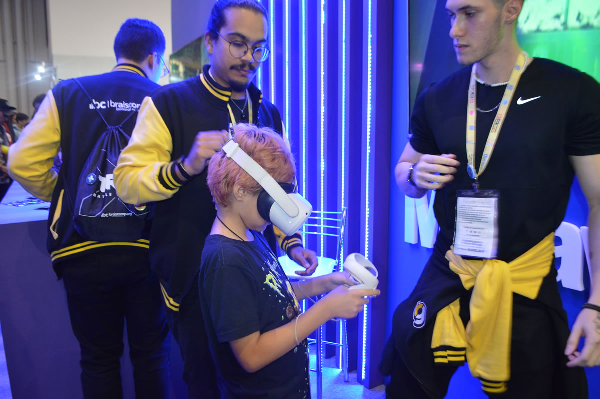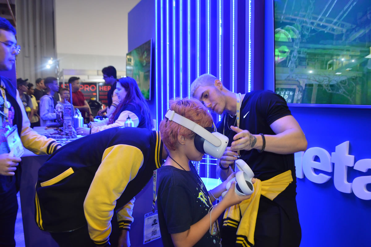 Digo isso pelo meu filho, que assim que chegou ao evento, viu um espaço para jogar Fortnite e quis ir para lá jogar – sendo que não fazia sequer 24 horas que ele havia jogado o jogo em casa! Ou seja, não é sobre jogar algo que nunca jogou, mas a experiência social do local em si. Claro que no caso do meu pequeno, o aconselhei e disse para ir experimentar algo novo, pois o alertei que havia filas para tudo e em um único dia não dá para fazer tudo que se deseja dentro do evento. E ele assim preferiu ter uma experiência com VR (num Oculus Quest 2), que é justamente algo que não temos em casa.