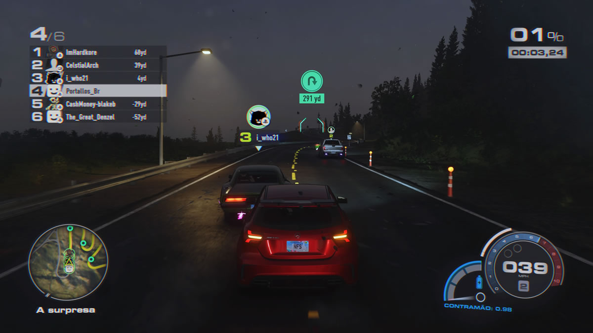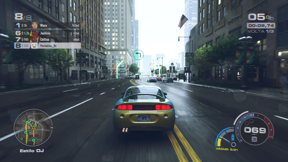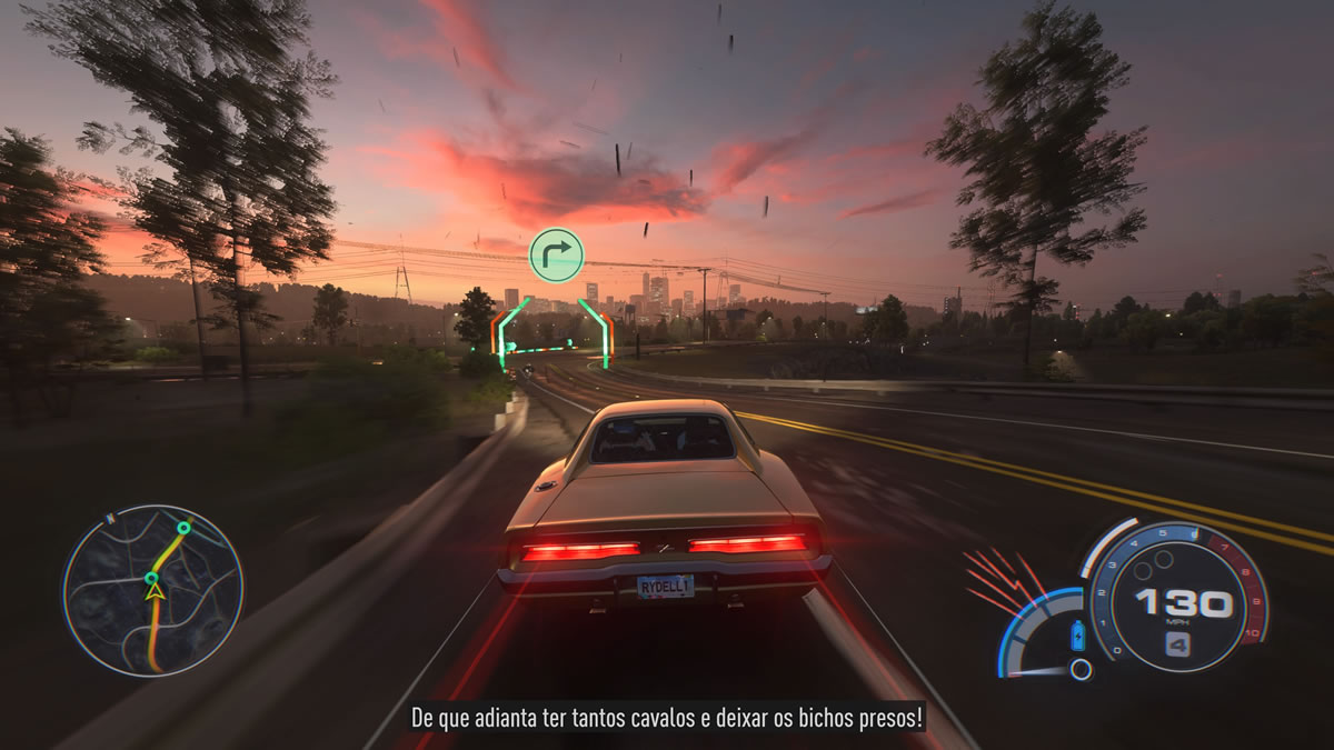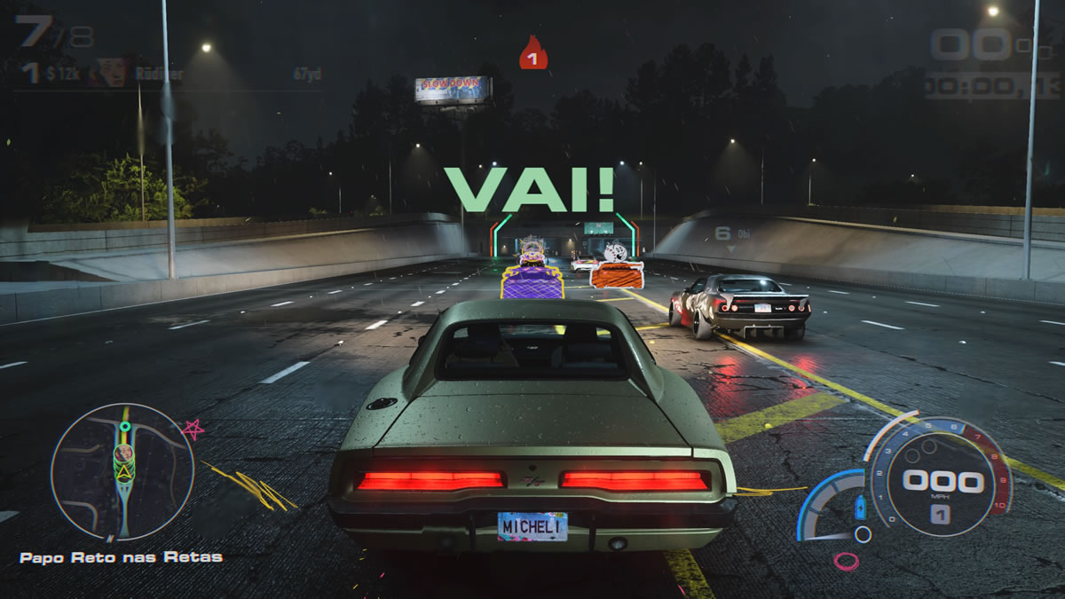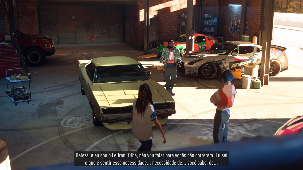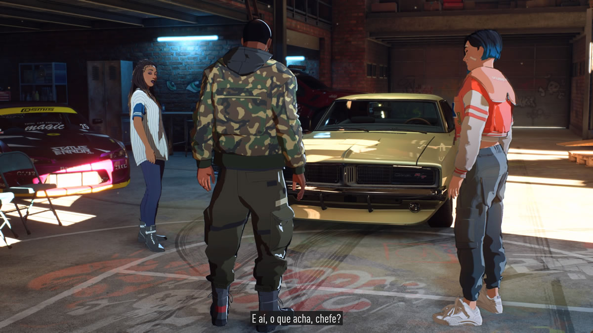 Need for Speed Unbound chega ao nosso mercado nacional com localização em português por meio de legendas para todos os diálogos de história, assim como menus e tutoriais traduzidos em nosso idioma. Acho ótimo que seja mais um título que tenha tido a atenção para chegar em nosso idioma, mas não posso deixar de pontuar que em um jogo de corrida a qual os personagens conversam em meio a ação de perseguições e disputas, nem sempre é fácil prestar atenção na legenda. Num mundo ideal, faria muito mais sentido se houvesse dublagem em áudio para nosso português. Entretanto é melhor algo do que nada, certo? Que seja legendado então.