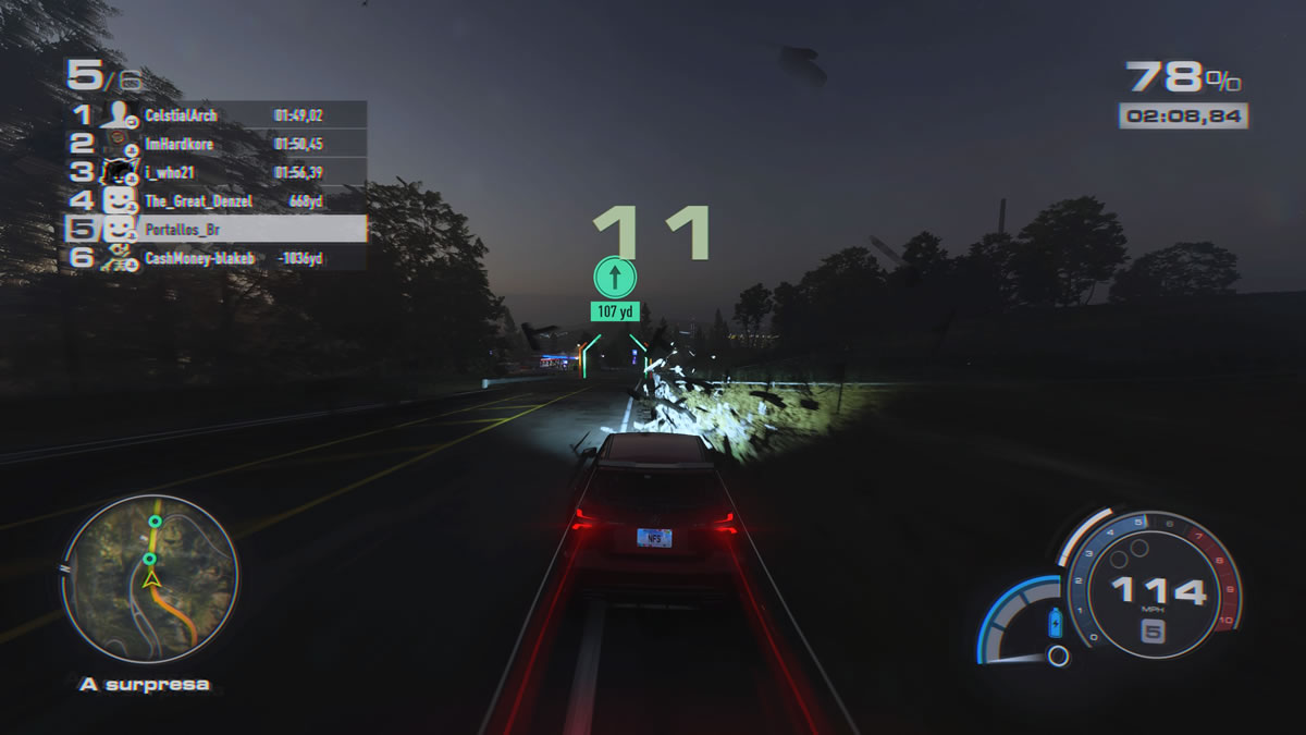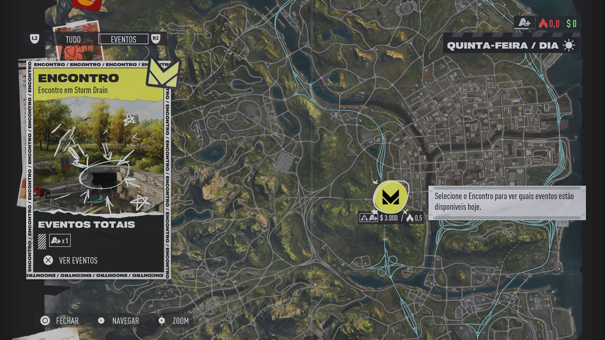 Enfim, voltando ao gameplay, toda essa explanação para pontuar algumas coisas: as horas iniciais da campanha requer um pouco de paciência, pois é lenta, tem uma dificuldade mais elevada e pode frustrar àqueles que sentem a necessidade de vencer cada corrida chegando em primeiro lugar. O esquema de exploração por ciclos dia/noite também segura um pouco o jogador que curte explorar e escolher entre dezenas de eventos de forma aleatória se sem necessariamente uma ordem específica. No começo você tem poucas opções por dia e por noite, então é realizar estes ventos, pegar alguns colecionáveis e seguir para o próximo ciclo. Nada justifica ficar demais explorando um ciclo com eventos já realizados. Para quem curte o mundo, volto ao exemplo, de Burnout Paradise City, isso vai soar um pouco chato.