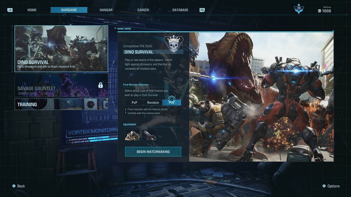 Os jogos de guerra de Leviatã se desdobram no modo de jogo principal, o Sobrevivência Jurássica. Nesses testes de combate, dois esquadrões de cinco Exocombatentes disputam para completar objetivos antes de seus oponentes enquanto batalham contra ondas de dinossauros. As missões do Sobrevivência Jurássica mudam de um jogo para outro de acordo com o progresso dos jogadores na história. Algumas partidas colocam os esquadrões um contra o outro, já outras exigem que você se alie ao inimigo para derrubar ameaças como o monstruoso Neo T. Rex. O modo principal também oferece opções entre jogador contra jogador (JxJ), jogador contra ambiente (JxA) e partidas aleatórias.