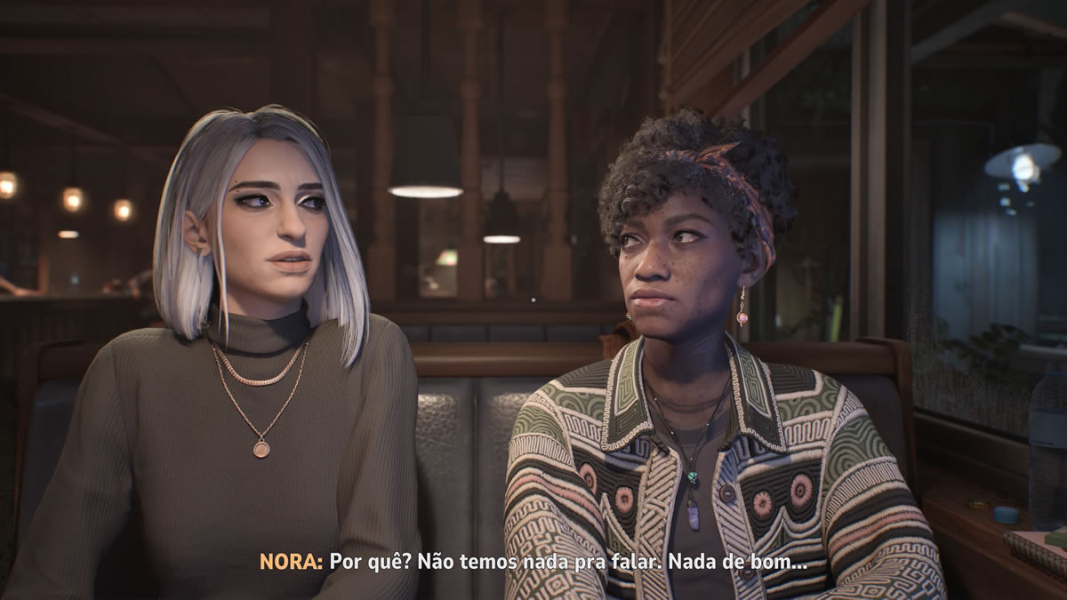 A respeito das minhas decisões, acabei conseguindo o final em que Swann fica sozinha no bar, restando somente a ela abrir a caixa deixada pela Kat. Não consegui convencer a Nora e nem Autumn a ficar, e parte disso talvez seja pelo fato de que descrevi nas conclusões finais. Muitos momentos do jogo, em que Swann precisava ser mais empática com as duas, acabei escolhendo diálogos mais neutros, sem dar a entender que Swann poderia estar interessada ou dando em cima delas. No fim, nenhuma delas ficou ao lado da Swann no final, o que não acho que seja um final errado, e na verdade, é mais realista e duro, como a vida adulta normalmente é.