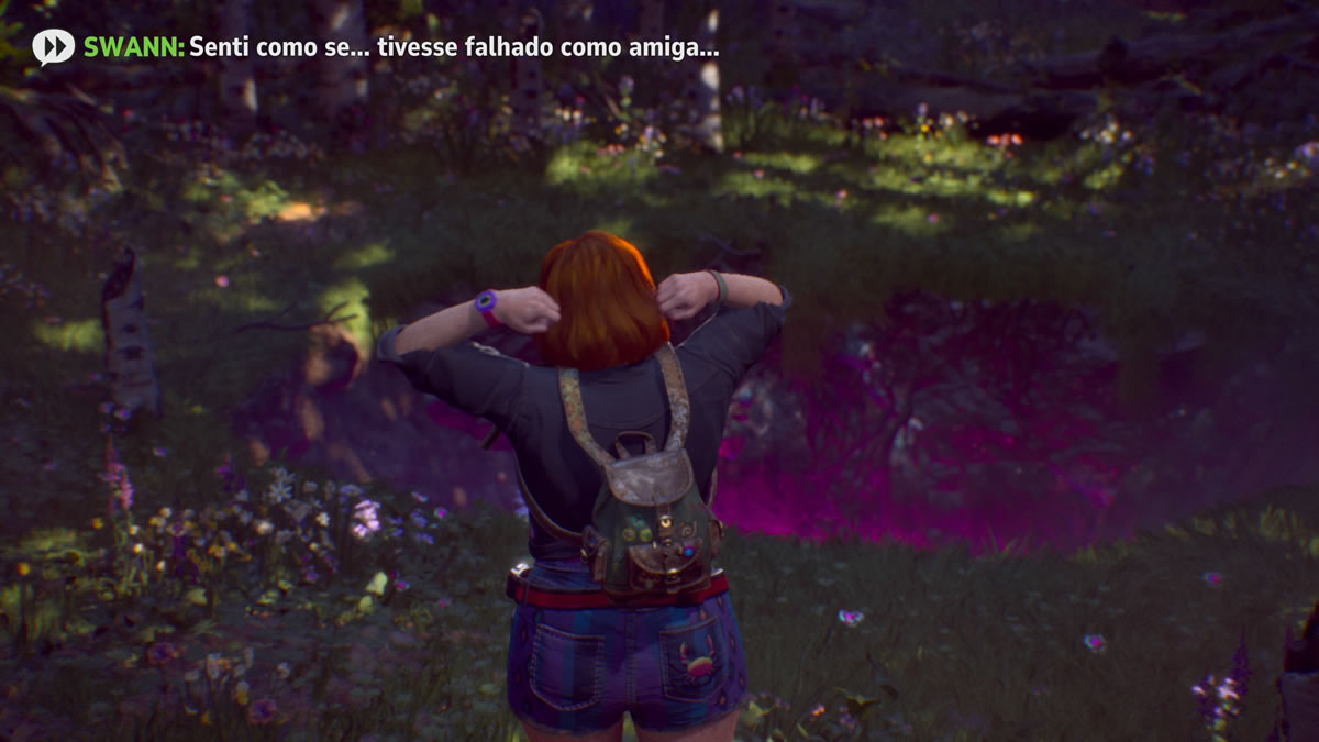 A sensação, com o término da Swann na floresta, ouvido o chamado da Kat, é um final muito agridoce. Porque quando o jogo parece que terá um desfecho melancólico e adulto, com saudosismo sobre a perda e o que nunca foi, acaba sendo interrompido por um gancho do tipo “espera, a história ainda não acabou“. E assim, o que deveria ser uma conclusão, não é mais! Isso me frustrou um pouco, especialmente por saber que não existe, neste momento, expectativas de uma Fita 3.