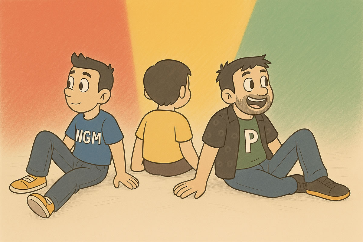 Sendo bem direto, estes três personagens são avatares inspirados em mim mesmo, representando três fases da uma vida, o adulto, o jovem e a criança. Basicamente são personas deste editor. São avatares e representações visuais que, sendo bem sincero, sempre desejei que o site tivesse (“mascotes“), mas até então não tinha destreza, ou técnica, para criar, ou gerenciar, um projeto gráfico assim. Ao menos até hoje.