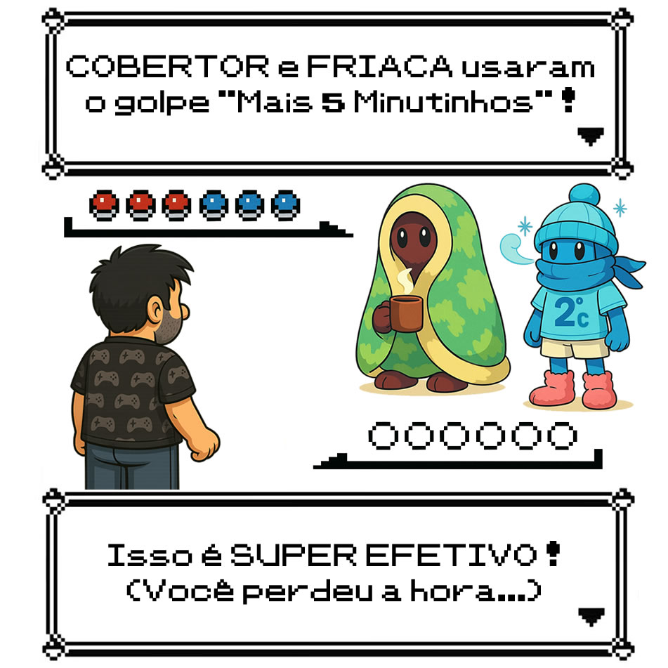 Trago estes dois exemplos justamente para demonstrar que o ChatGPT pode parecer uma grande trapaça no que diz respeito a arte digital, mas há que se considerar também que ele pode ser uma ferramenta para materializar a imaginação de alguém que pode pensar em peças visuais, mas não tem a técnica para tal. Por sinal, essa brincadeira de “Batalhas Pokémon na Vida Real“, surgiu desta outra arte que fiz para o perfil da minha esposa.
