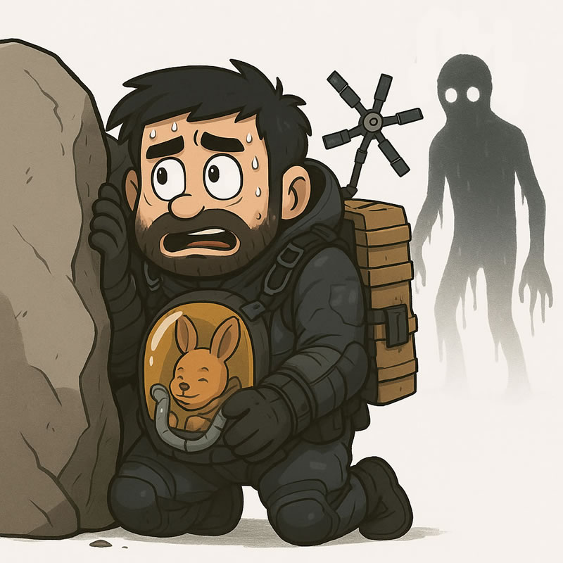 Foi aí que entendi a ferramenta que tinha em mãos. Há muito debate sobre criar arte digital com Inteligência Artificial, e talvez haja sim um debate a ser feito e discutido a respeito, além de um olhar caso a caso, uso a uso. No meu caso, fiquei com a impressão de que estou naquele estágio de alguém que pode criar uma ideia, colocar em um storyboard, mas não tem as habilidades de ir adiante. O ChatGPT faz isso por mim. Mas não é ele quem cria essa ideia, e muitas vezes, exige dezenas de tentativas, textos, rascunhos de desenhos mal feitos, até ele entender o que estou realmente imaginando. Outros dois exemplos do que estou querendo dizer: