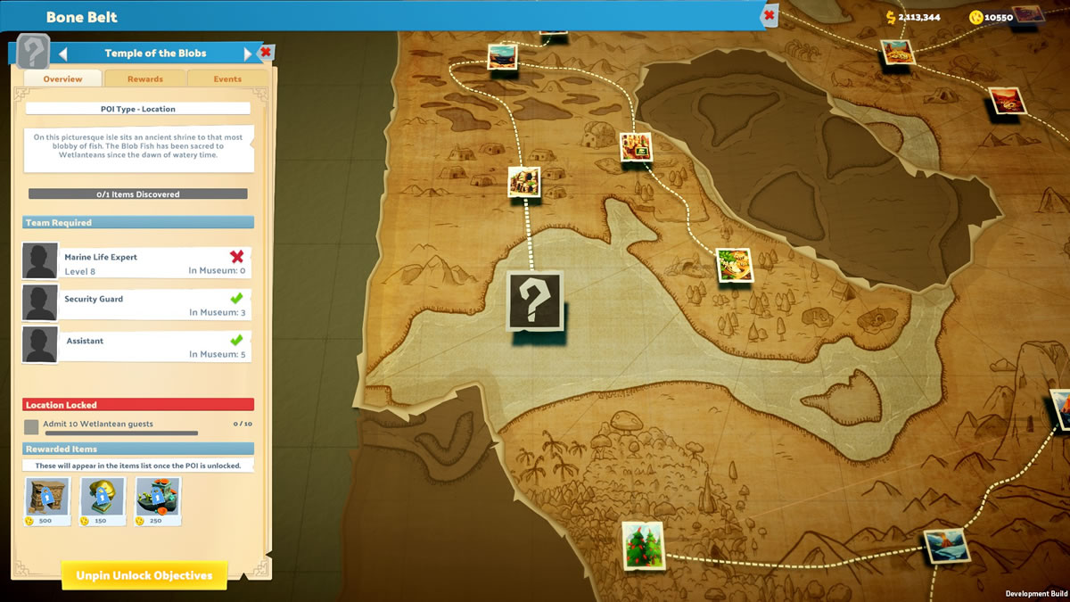 Nesta emocionante colaboração com o game de aventura de pesca da Black Salt Games, DREDGE, jogadores podem descobrir diversos conteúdos misteriosos em Two Point Museum quando explorarem as águas obscuras de fenda DREDGE. Explore três Pontos de Interesse remotos por The Grey Isles, capture dez novas espécies, desbloqueie novas decorações de aquário e estilize sua equipe com novas vestimentas para os funcionários. Mas fique de olho na água — pescar de dia é tranquilo, mas à noite… é melhor não. Ah, e não olhe tanto para o Aberration Fish…