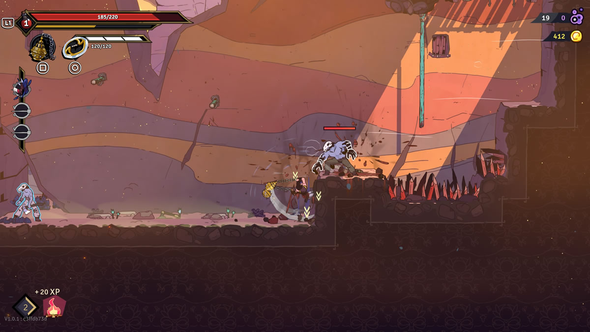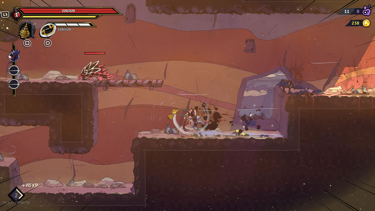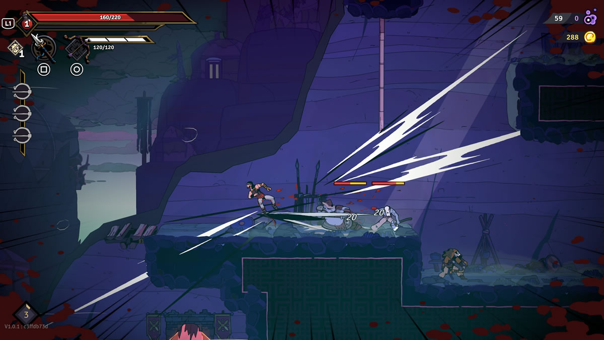 Lá no começo da análise mencionei o sistema de mapa mental que auxilia a construir a narrativa do jogo, e que dá sentido as áreas e locais de exploração entre partidas. Mas um bom roguelite não pode ser apenas isso, e há mais elementos que são criadas, com a insistência do jogador em continuar tentando romper as defesas dos Hunos, mesmo a cada ciclo de morte do príncipe.