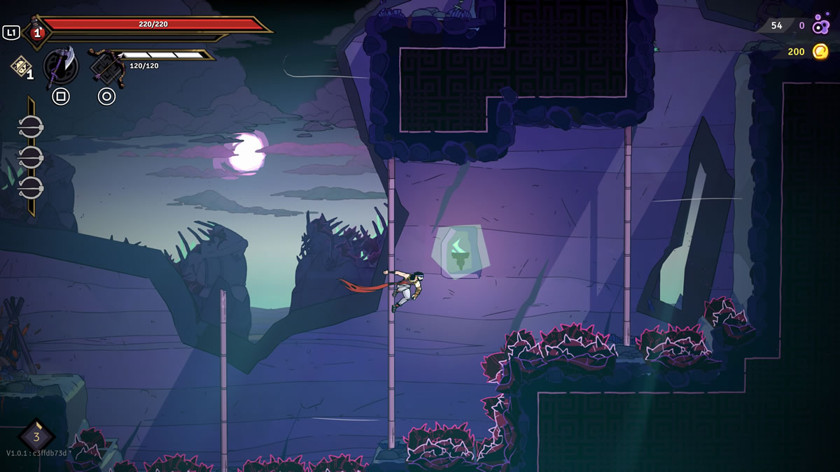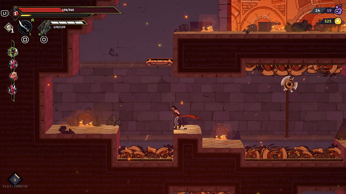 E acho que esse conceito de rotas é diferente de um metroidvania, ou até mesmo roguevania, como o próprio já mencionado Dead Cells se intitula. A construção de layout das áreas de The Rogue Prince of Persia é bem mais linear e horizontal do que nos subgêneros mencionados. Para chegar na saída de cada área basta seguir adiante. Eventualmente pode haver uma saída alternativa ou caminho alternativo que dá na saída, com o fim da área levanto a um ponto de viagem rápida para a rota ainda não explorada. Ou seja, se perder é meio difícil.
