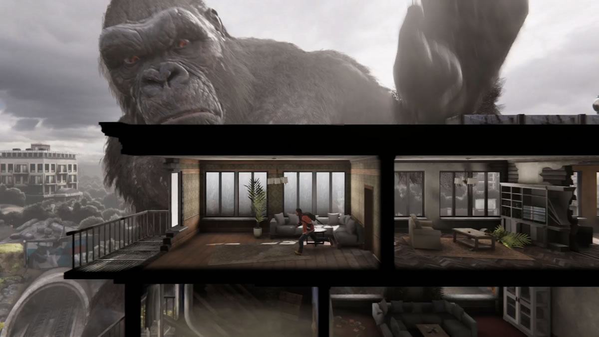 Kong: Survivor Instinct funciona dentro do gênero de aventura e plataforma, numa progressão de avanço lateral 2D, ainda que todo o visual do jogo tenha gráficos e perspectiva tridimensional. A Direção de Arte do jogo me lembrou muito outro título independente lá dos anos de 2014 e 2016, chamado This War of Mine. Ambos tem esse aspecto 2D em termos de perspectiva, áreas urbanas e o conceito de corte visual, onde se tem a perspectiva de casas e edificações num molde bidimensional onde é possível ver dentro dos cômodos, tal qual a separação dos mesmos, como uma planta da casa em tempo real.