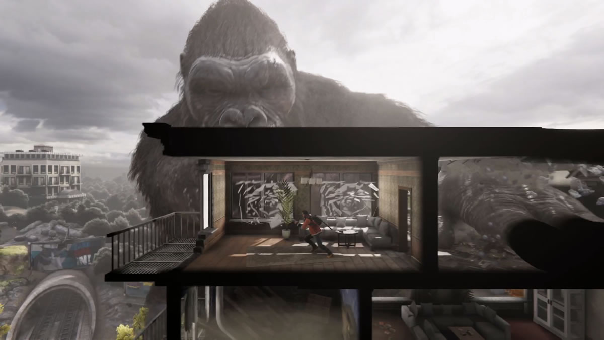 Kong: Survivor Instinct funciona dentro do gênero de aventura e plataforma, numa progressão de avanço lateral 2D, ainda que todo o visual do jogo tenha gráficos e perspectiva tridimensional. A Direção de Arte do jogo me lembrou muito outro título independente lá dos anos de 2014 e 2016, chamado This War of Mine. Ambos tem esse aspecto 2D em termos de perspectiva, áreas urbanas e o conceito de corte visual, onde se tem a perspectiva de casas e edificações num molde bidimensional onde é possível ver dentro dos cômodos, tal qual a separação dos mesmos, como uma planta da casa em tempo real.