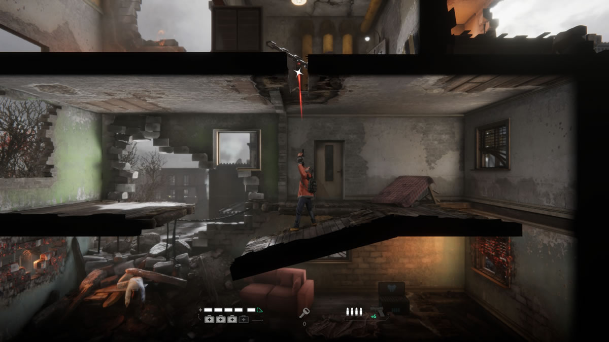 Em termos de jogabilidade, a busca de David por sua filha é repleta de percalços, e isso é bem traduzido para uma proposta de jogo interativo. Primeiro que você não tem salto duplo ou nada espalhafatoso. O jogo apresenta uma mobilidade bem pé no chão, quase realista. Seu salto é pequeno e pesado, o suficiente para saltar um cabo eletrificado ou um pequeno buraco. Subir em parecer? Apenas se o seu pulo alcançar a beirada, caso contrário, é preciso empurrar um caixote ou algo para saltar mais alto. Cair de grande alturas? Quase sempre é morte certa.
