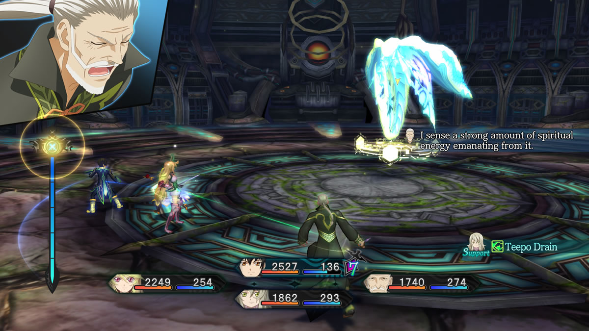 Aqui tudo vai acontecer integralmente, e não vamos esquecer de nenhum dos membros do grupo. Fica bem evidente o cuidado e a atenção dedicados a cada personagem e à forma como eles se conectam ao mundo, algo reforçado pelo sistema de diálogos característico da série Tales. São aqueles diálogos que surgem no meio da exploração, que podemos acompanhar pressionando um botão, ou ignorá-los para conferir depois, em um dos menus, ou nem conferir, caso você não se importe com isso, mas é fortemente recomendado conferir, pois temos muitas pérolas ali escondidas. Uma pena que o jogo não esteja localizado em nosso português, pois isso facilitaria tanto a exploração desse recurso.