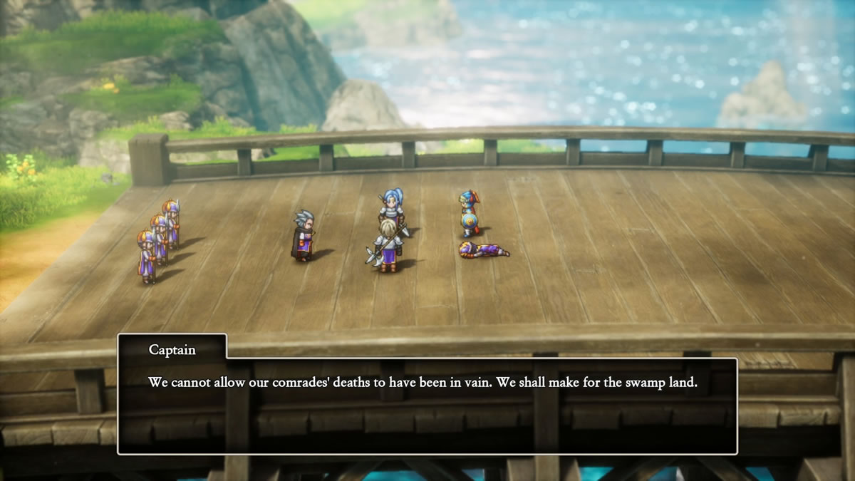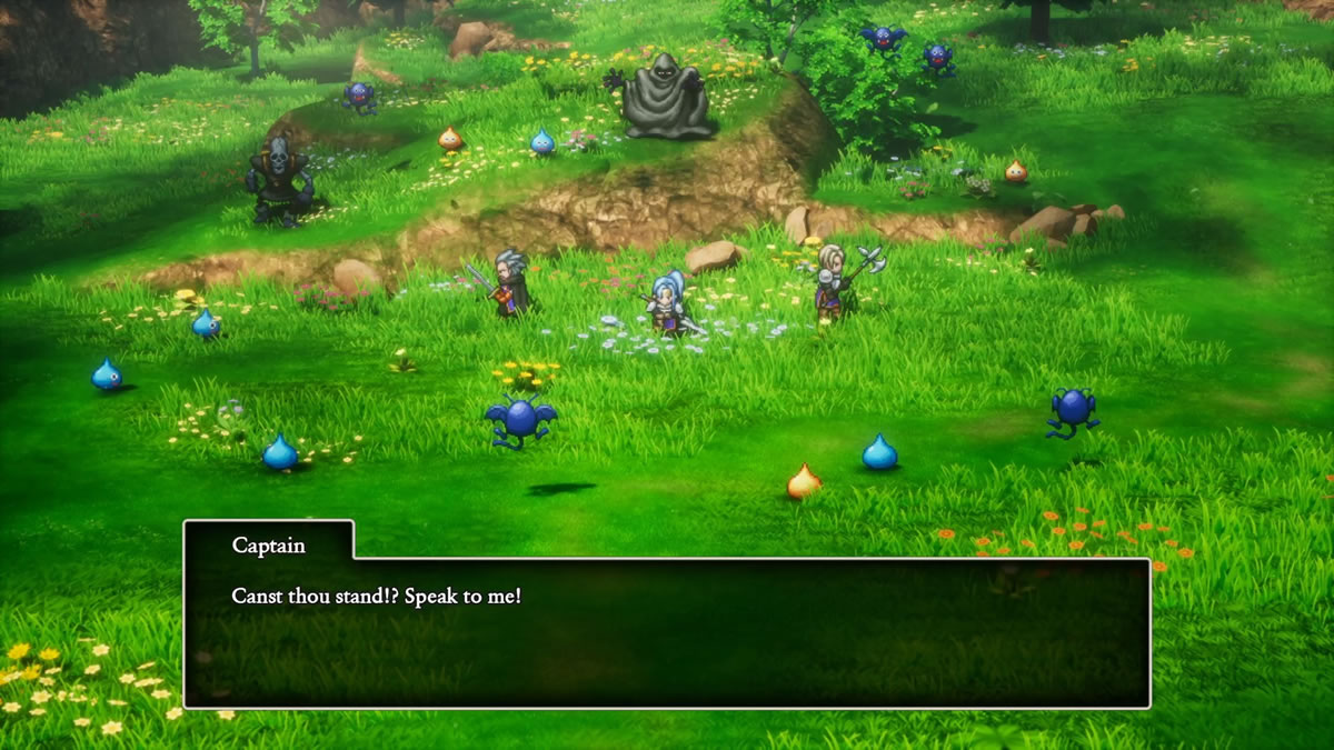 Só que para Dragon Quest I & II HD-2D Remake, ouve esse olhar para o texto original. Super carregado, de difícil compreensão, e decidiu se manter. Bem, neste ponto, tenha opinião de que houve uma falha grave. Acho que pensando no texto original em japonês, que não é enfeitado com terminologias arcaicas, assim como parece haver com a localização dele em outros idiomas (como espanhol, francês e alemão), não vejo com bons olhos que decidiram manter no idioma em inglês.