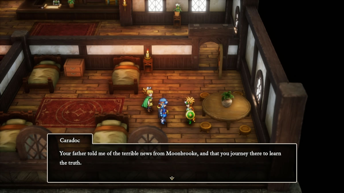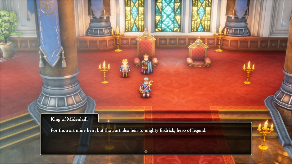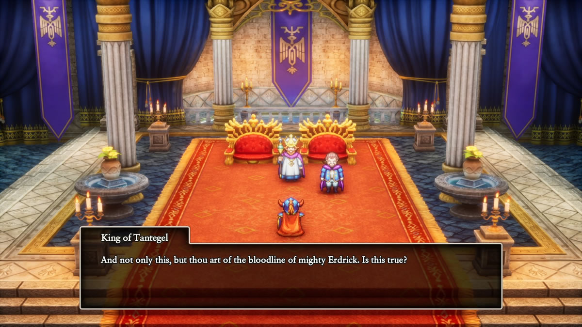 Antes de começar a destrinchar outros pontos, preciso colocar logo uma ferida em evidência, e a qual retornarei mais a frente deste texto: Dragon Quest I & II HD-2D Remake não apresenta localização em português, o que é um pecado de alto impacto, considerando a escolha de uma inglês medieval e arcaico (thou art = you are), criando barreiras de acessibilidades que atrapalham em muito a experiência com o título. Abordarei isso mais adiante.