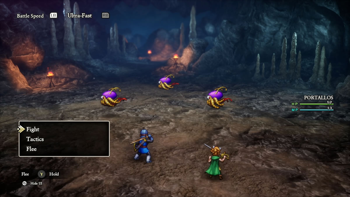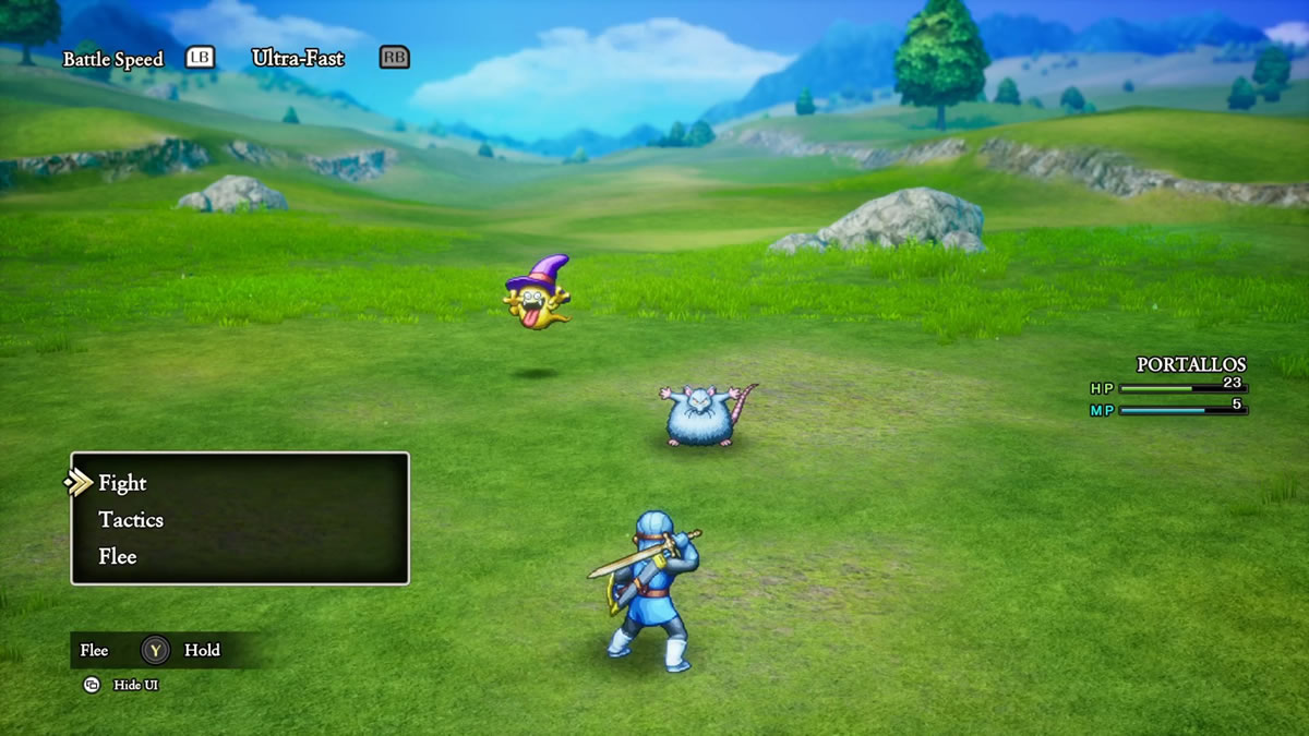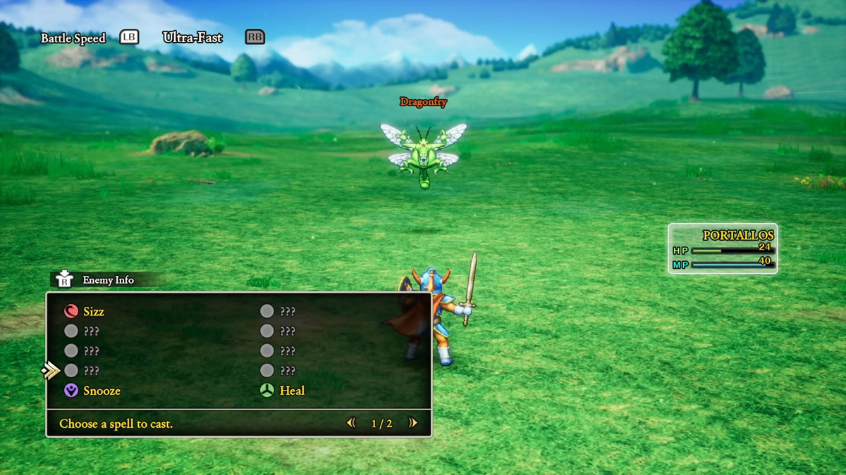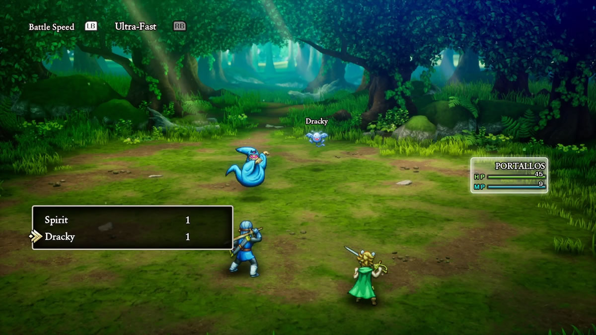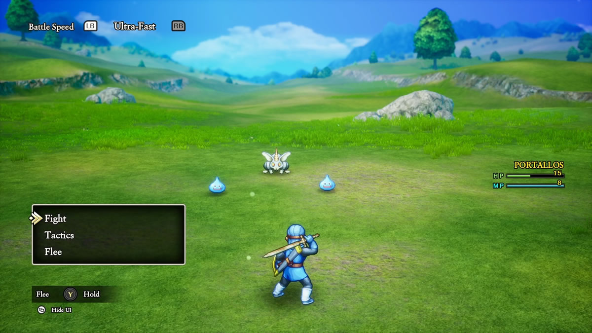Olhando um pouco para Dragon Quest II, acho interessante mencionar que Dragon Quest I & II HD-2D Remake adiciona a mecânica de táticas e auto batalhas para os aliados da equipe do protagonista, algo que acaba sendo introduzido originalmente em Dragon Quest 4 (1990). Isso, por sinal, é padrão do jogo, sendo necessário desligar a função, para poder controlar os demais membro da sua equipe.