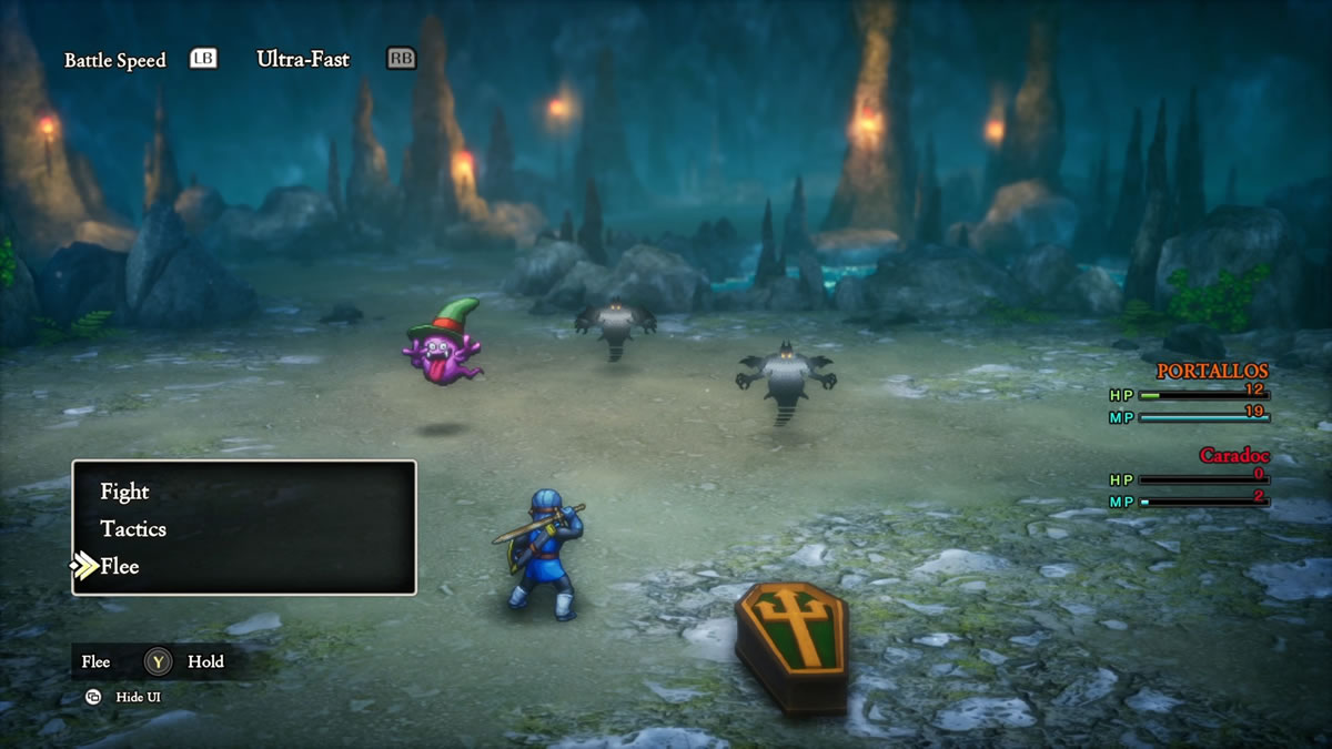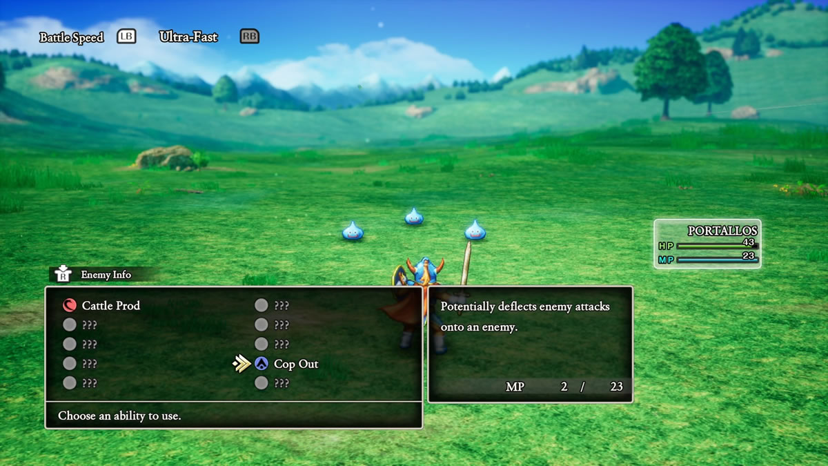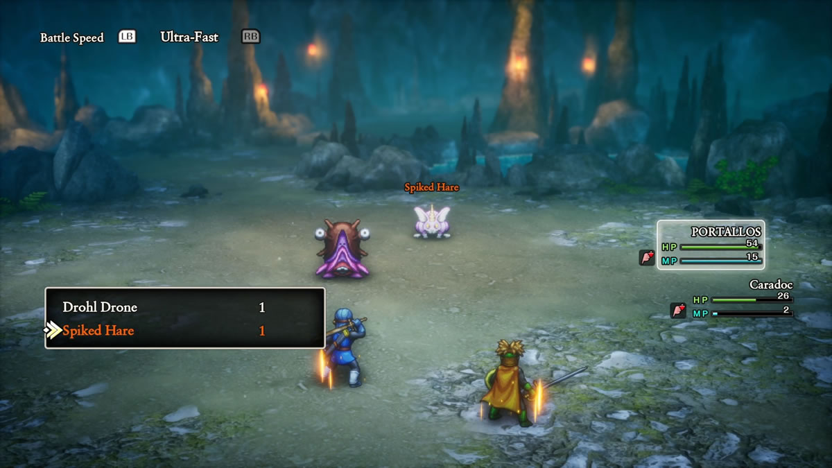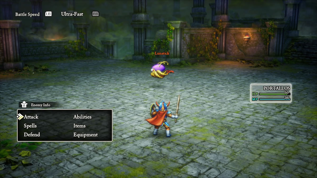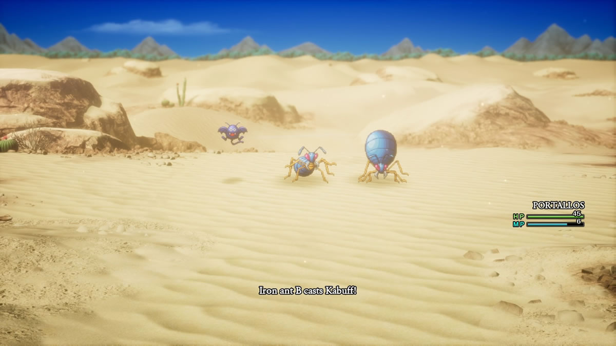 Olhando um pouco para Dragon Quest II, acho interessante mencionar que Dragon Quest I & II HD-2D Remake adiciona a mecânica de táticas e auto batalhas para os aliados da equipe do protagonista, algo que acaba sendo introduzido originalmente em Dragon Quest 4 (1990). Isso, por sinal, é padrão do jogo, sendo necessário desligar a função, para poder controlar os demais membro da sua equipe.