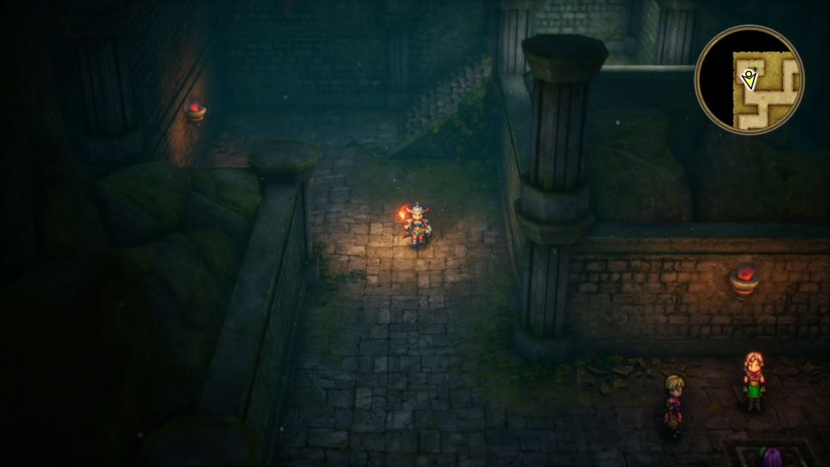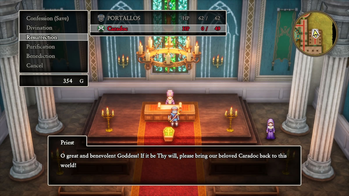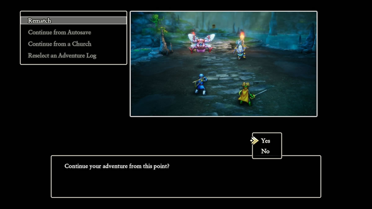 O remake não lhe dá uma saída boa para não precisar fazer tanto grinding. Poderia permitir ganhar experiência mais rapidamente, e talvez até faça isso de forma comparativa com o jogo original, de toda forma, algum grinding em certas etapas da progressão ainda se faz bastante necessário. O que o remake lhe ajuda nesse sentido, é que o auto save está por toda parte. Então, mesmo se perder uma batalha, por estar em nível baixo de força, o jogo recarregará imediatamente antes dessa batalha. Diferente do original, onde o salve ocorria apenas em pontos fixos do mapa (as igrejas), e morrer explorando o mapa significava a perda de todo o progresso.
