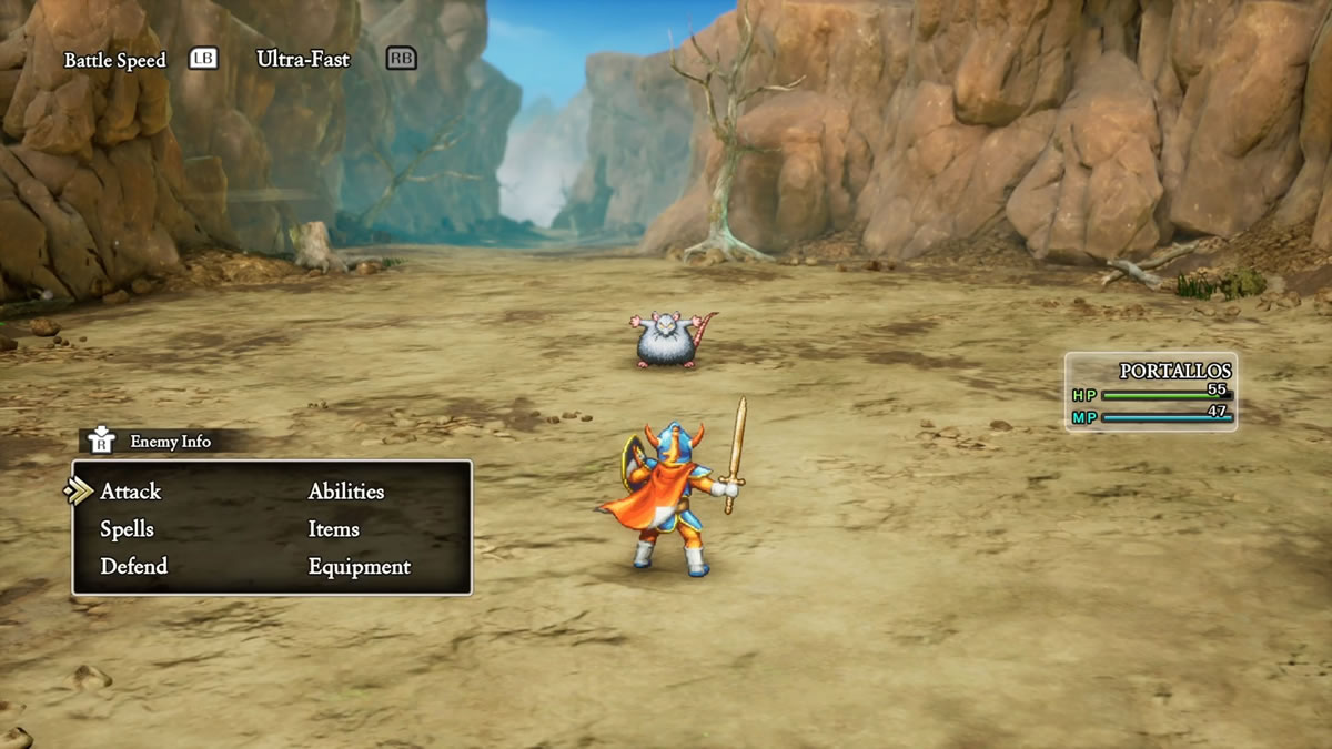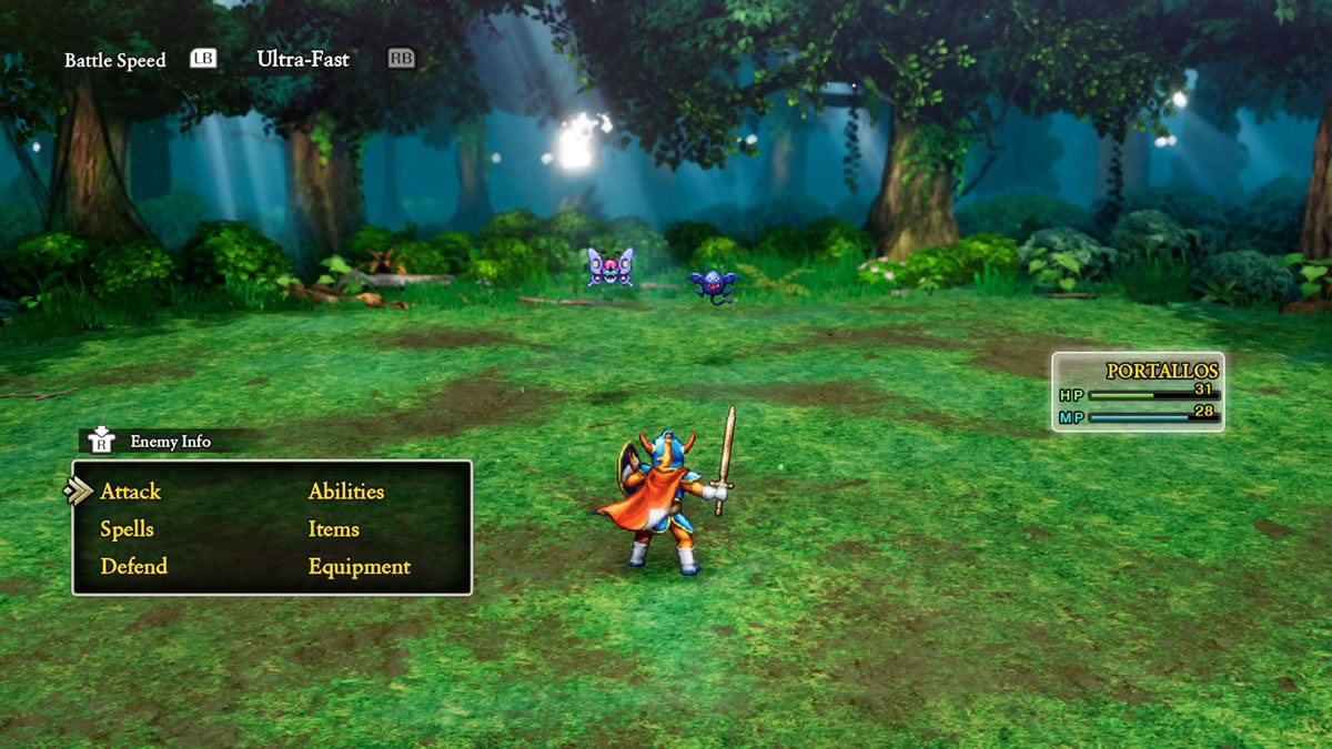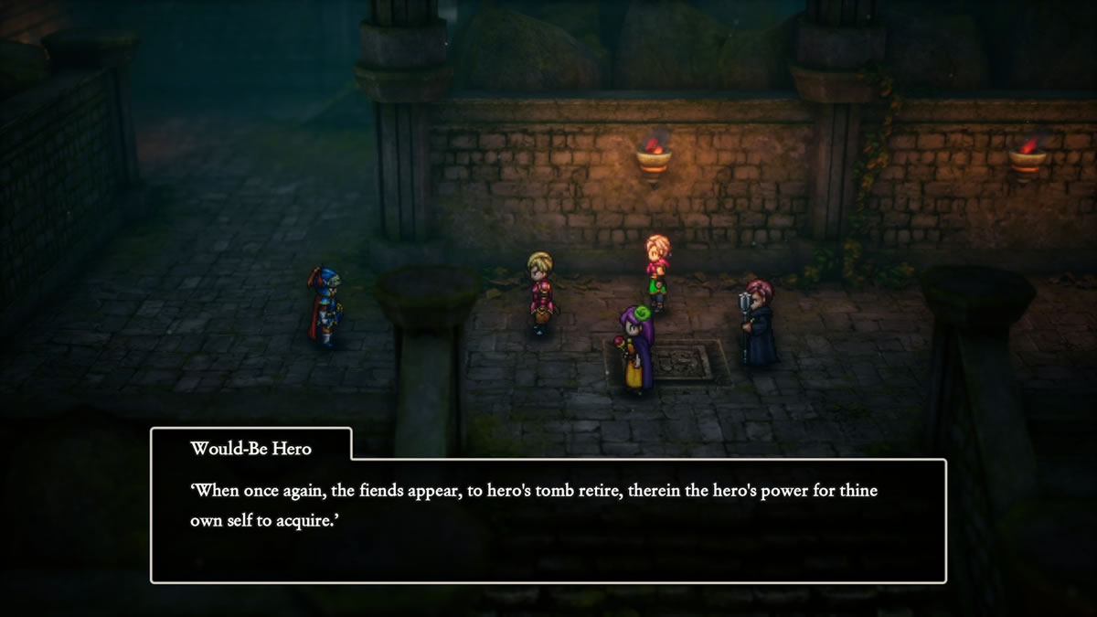 O primeiro jogo tem inclusive essa aura icônica, e pode soar muito estranho jogá-lo dessa forma hoje, porque é a jornada de um herói solitário, sem ninguém para lhe auxiliar nas batalhas. E neste novo remake é exatamente isso que acontece, o herói (sem nome, nomeado apenas pelo jogador) é o único personagem controlado pelo jogador ao longo de toda a aventura. Ele detém todos os tipos de ataques, encantamentos e feitiços. Não há uma classe de suporte. É você contra o mundo, o que pode tornar a aventura original bem complicada.