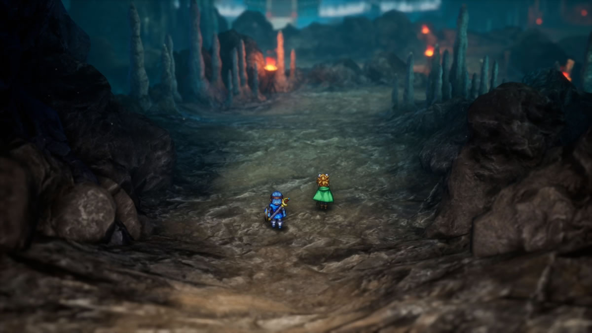 A parte mais fácil deste remake é visivelmente notada: os gráficos! A Direção de Arte se aproveita da técnica HD-2D, que surge com bastante evidência em meados de 2018, com o lançamento de Octopath Traveler, utilizando técnicas que misturam elementos e perspectivas bidimensionais aplicadas a objetos e personagens criados em sprites de pixel arts incrivelmente detalhistas, dentro de ambientes completamente construídos em gráficos 3D, adicionando muitos elementos de efeitos visuais de alta resolução, como fogo, raio, reflexos e afins. Uma técnica que combina dois mundos, gerando um resultado ímpar que até hoje segue impressionante a qualidade e riqueza de seus detalhes.