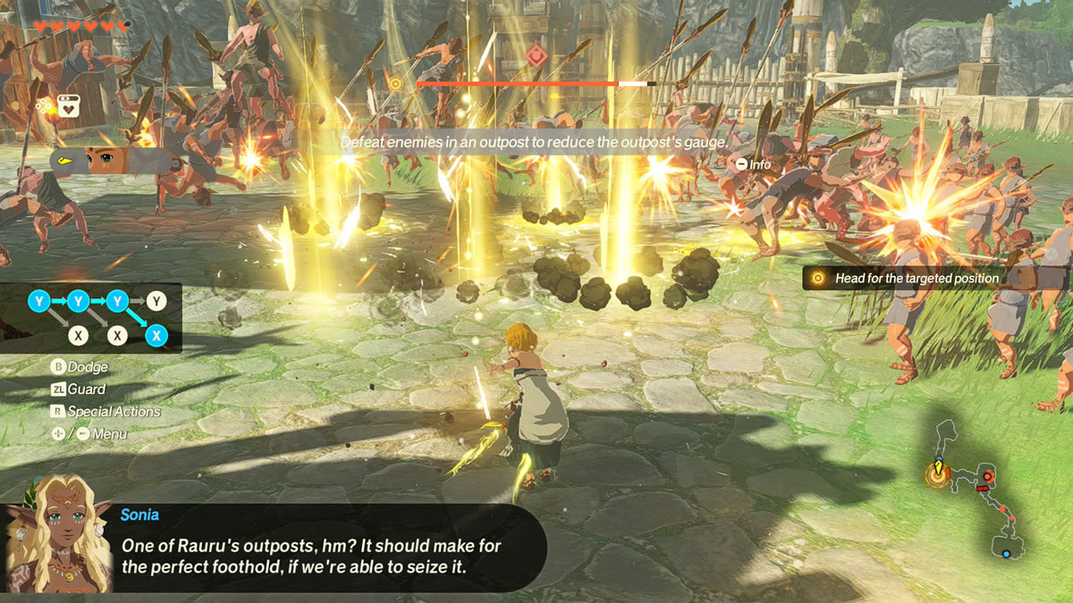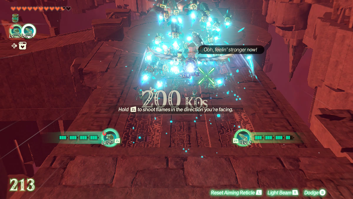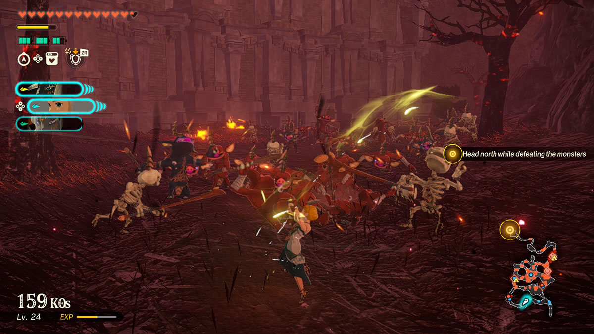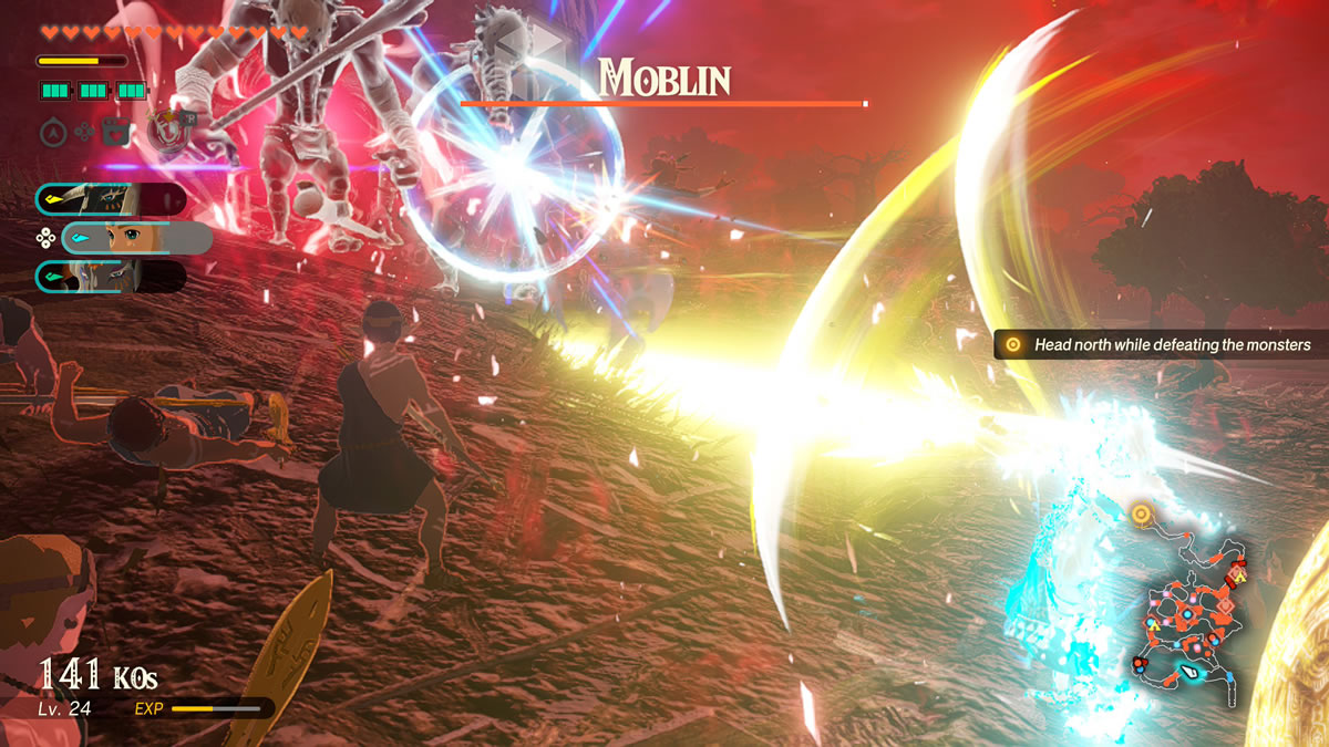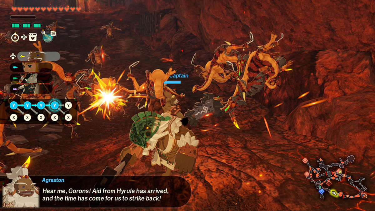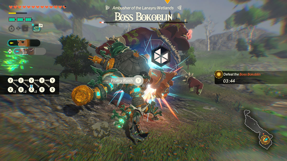 E apesar desta ser a estrutura básica de um musou, existem outros elementos que adicionam mais complexidade e profundidade as suas mecânicas, como por exemplo, os chefes e adversários resilientes, com grandes barras de vida e resistentes escudo, que devem ser rompidos para que só aí sejam derrotados. E é aqui que reside boa parte do que torna Hyrule Warriors: Age of Imprisonment um título gostoso de se aventurar.