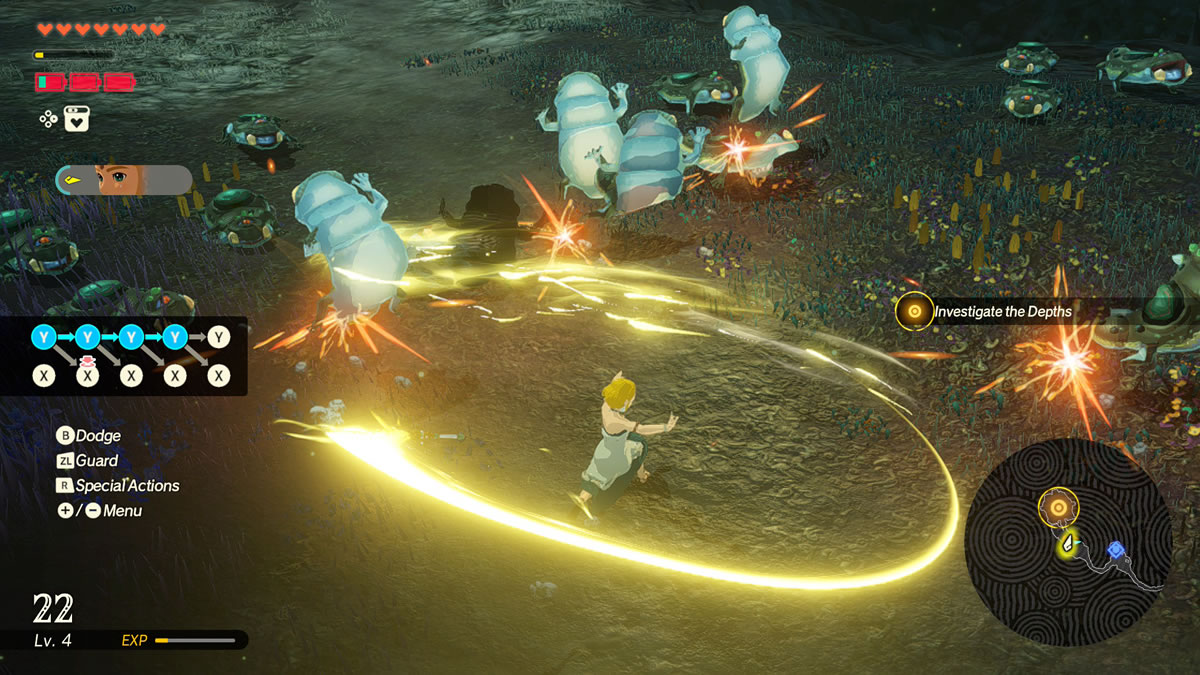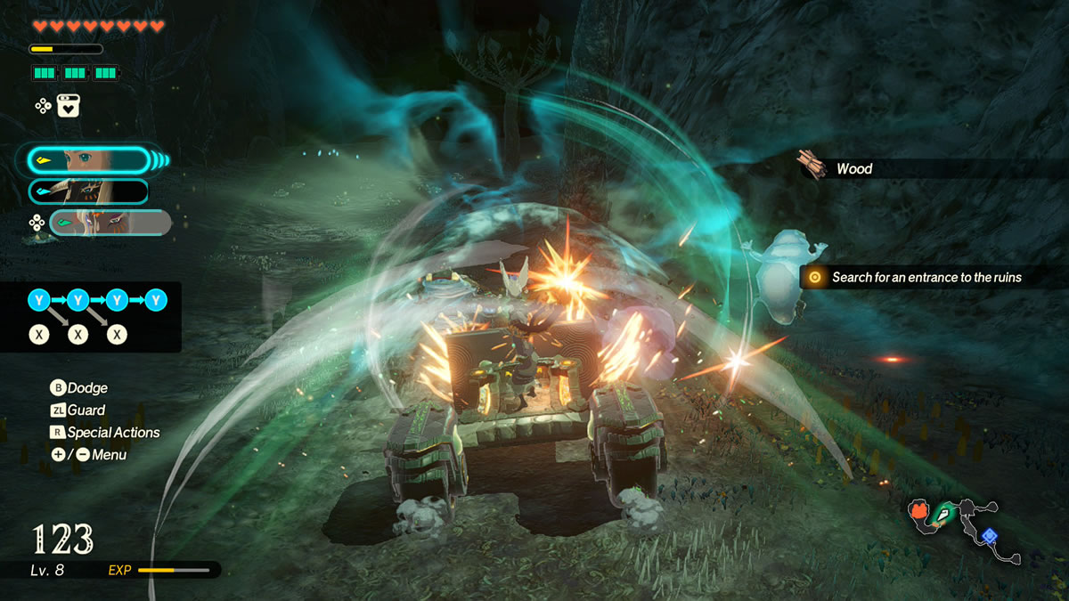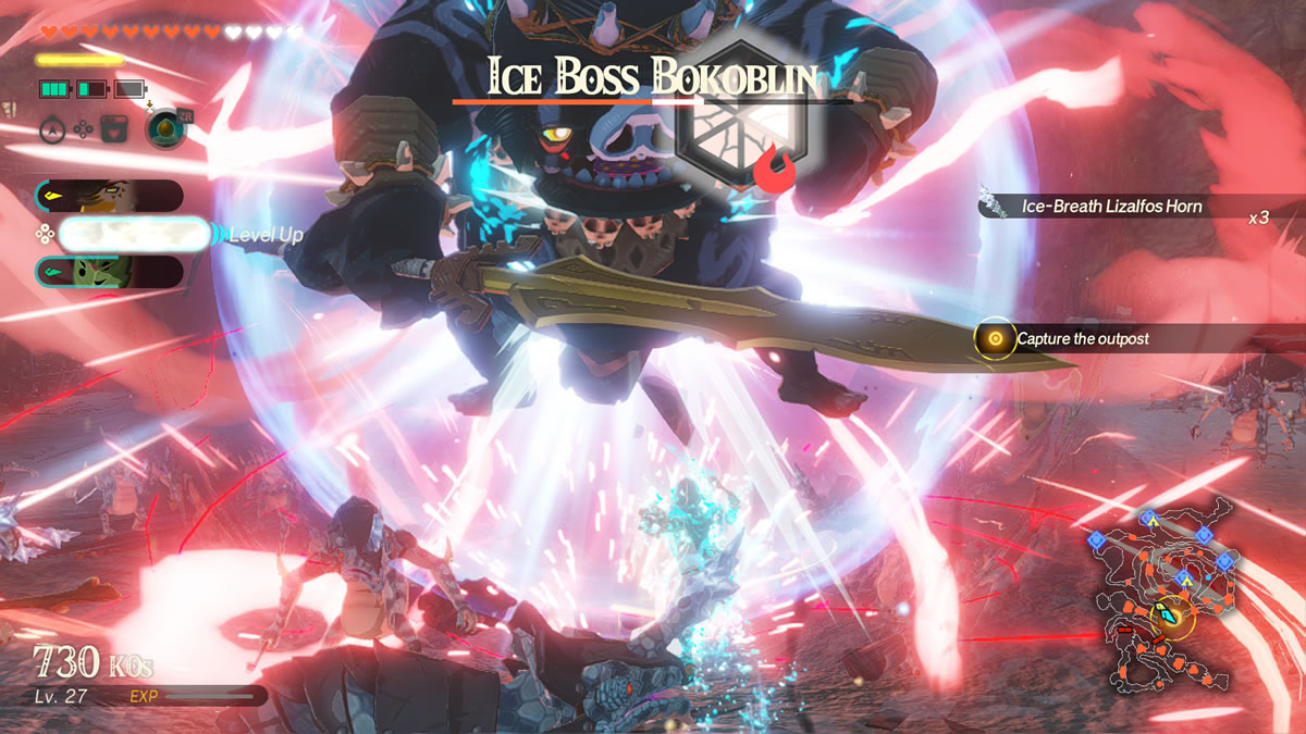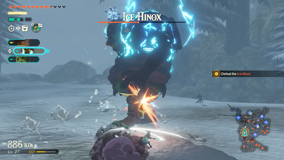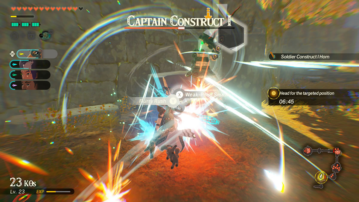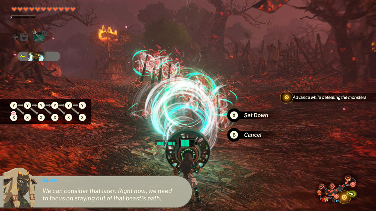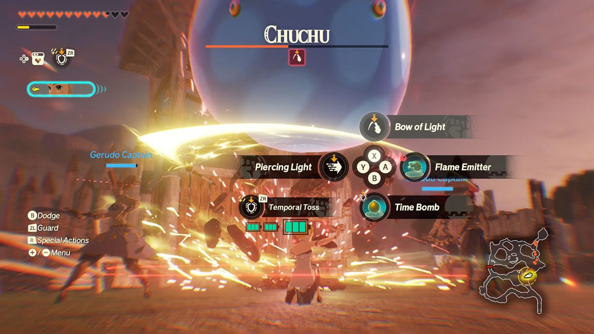 Mas os desenvolvedores foram bem respeitosos com os elementos que o jogo tem para com Tears of the Kingdom, os próprios dispositivos zonais integrados ao gameplay é um belo exemplo. Não vá esperando poder criar qualquer arma, mas muitos dos que existem no jogo original, que causam dano elemento, foram resgatadas aqui e pode ser usados em combate, contanto que o jogador tenha a energia de suas baterias, outro elemento oriundo de sua base estrutural.