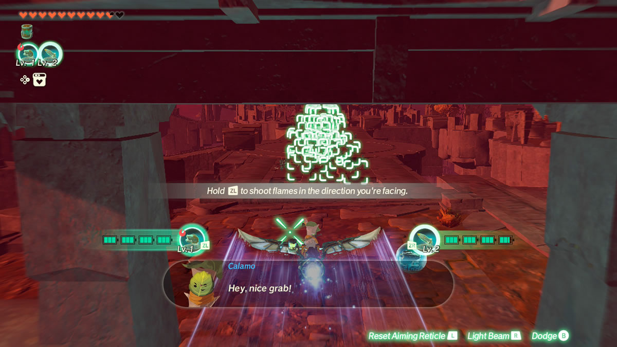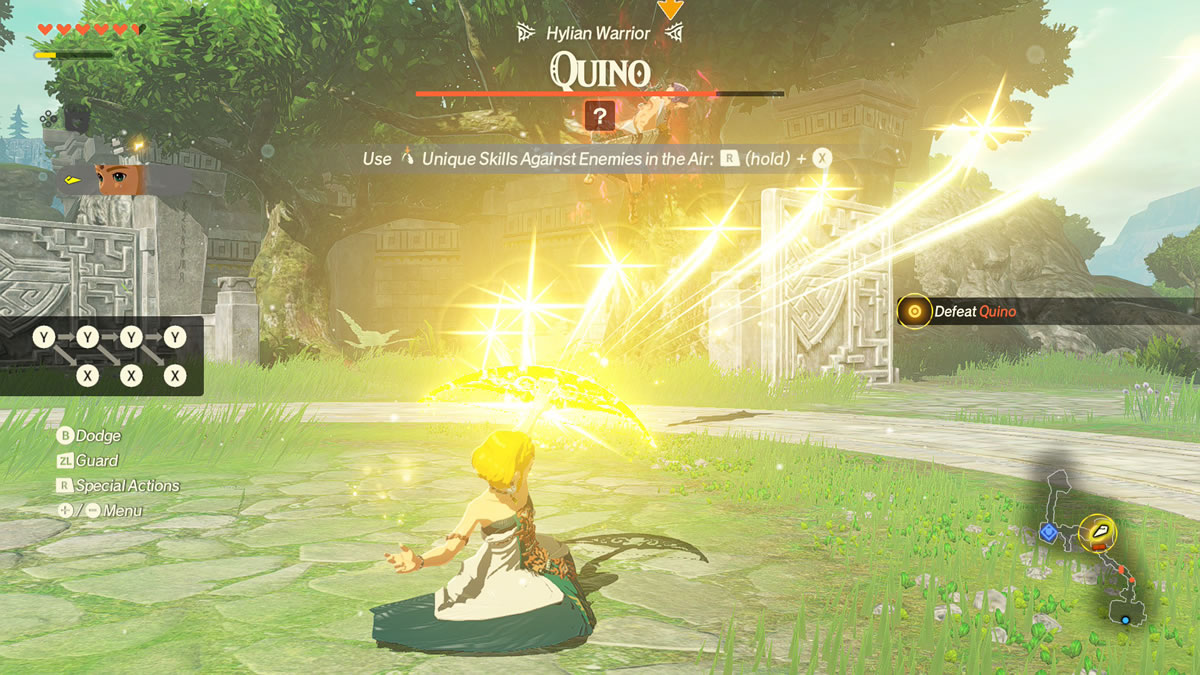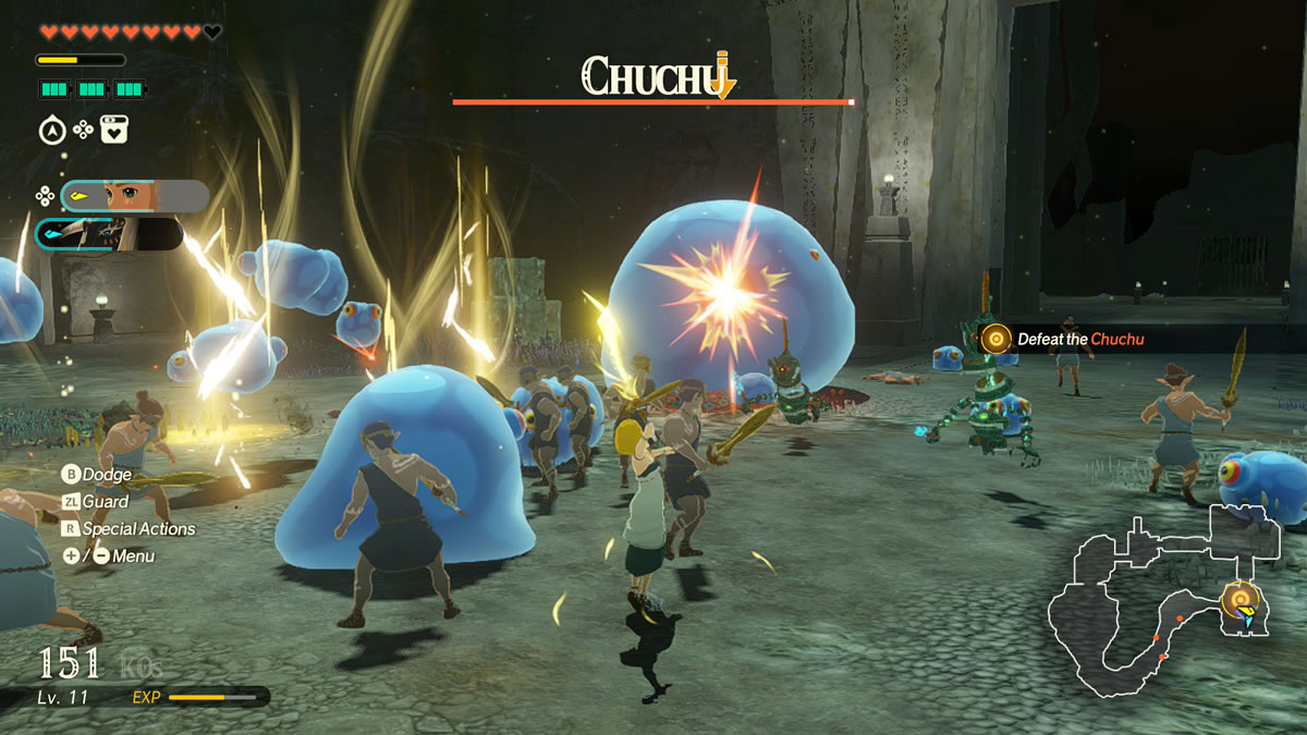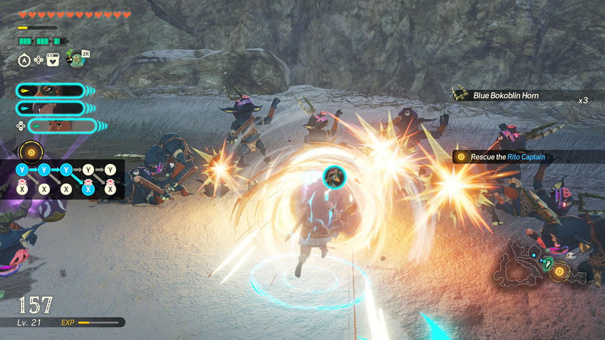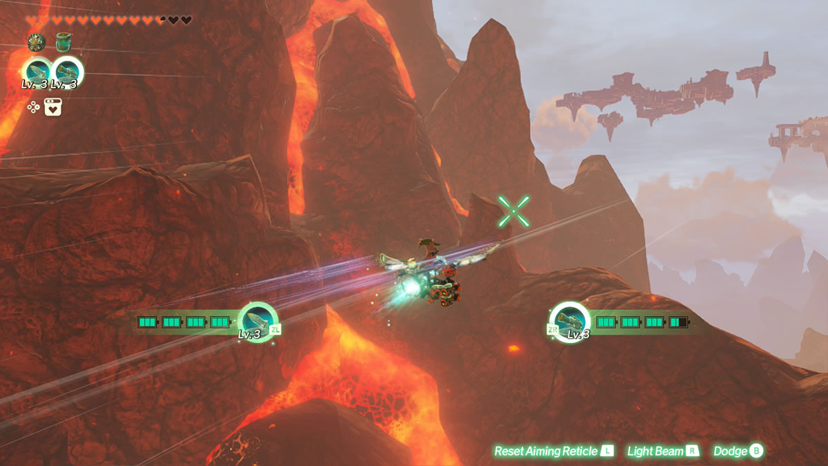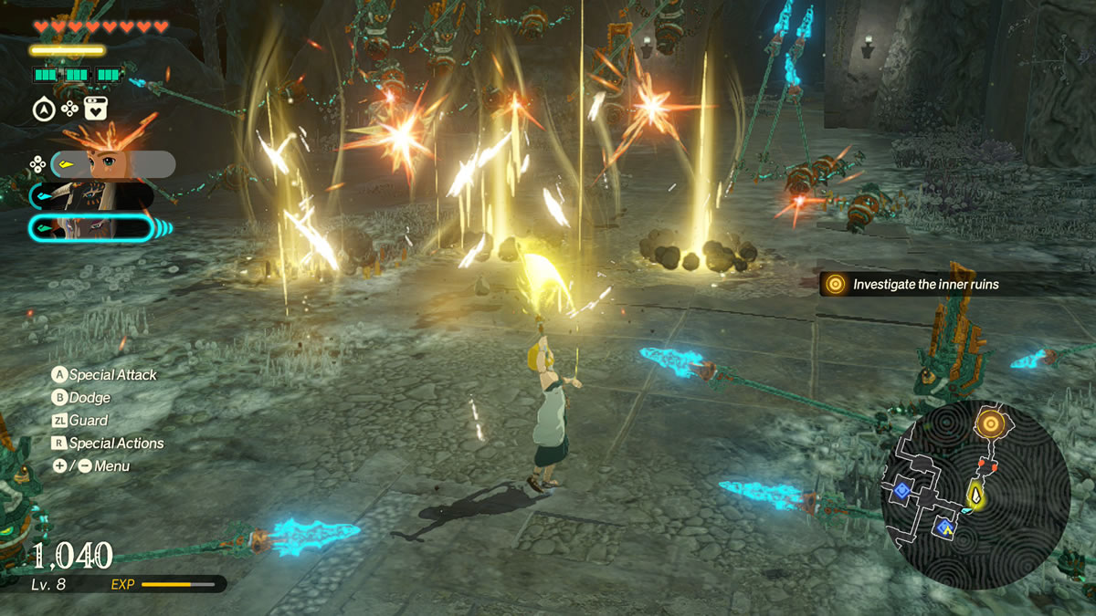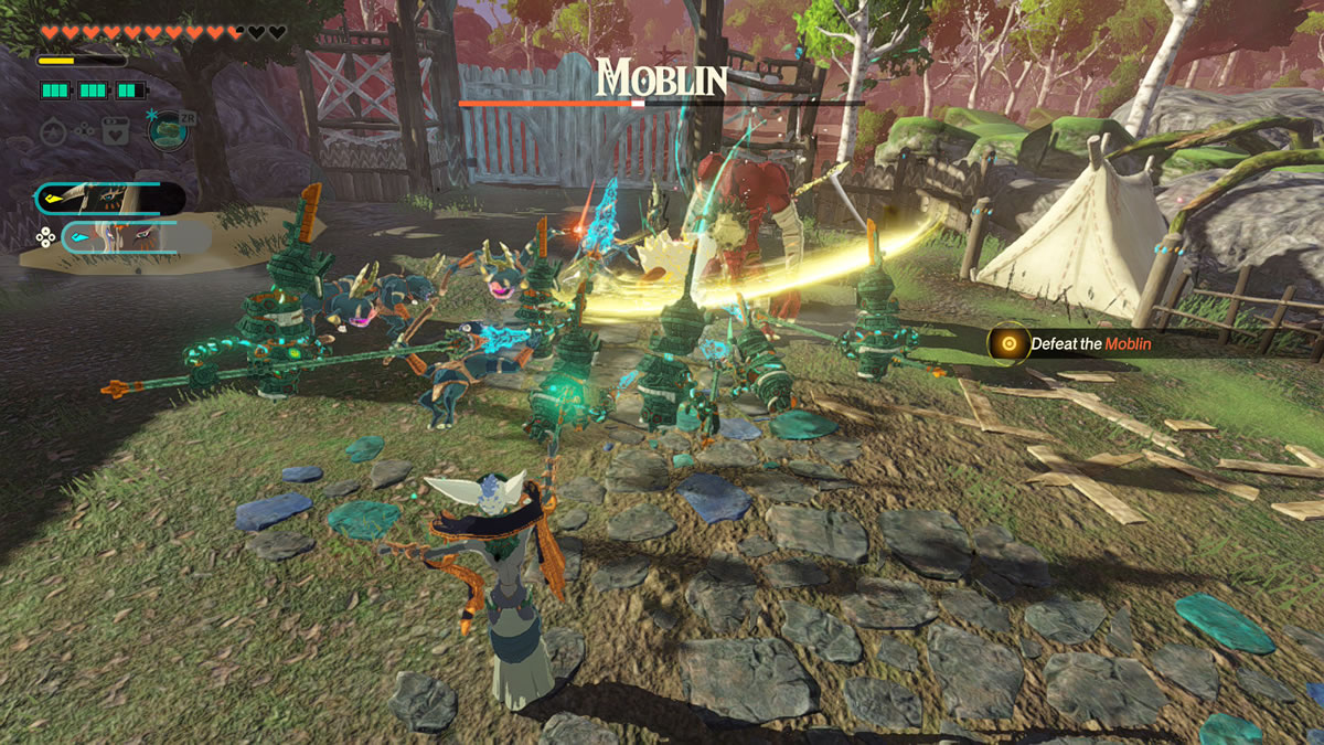 Mas os desenvolvedores foram bem respeitosos com os elementos que o jogo tem para com Tears of the Kingdom, os próprios dispositivos zonais integrados ao gameplay é um belo exemplo. Não vá esperando poder criar qualquer arma, mas muitos dos que existem no jogo original, que causam dano elemento, foram resgatadas aqui e pode ser usados em combate, contanto que o jogador tenha a energia de suas baterias, outro elemento oriundo de sua base estrutural.