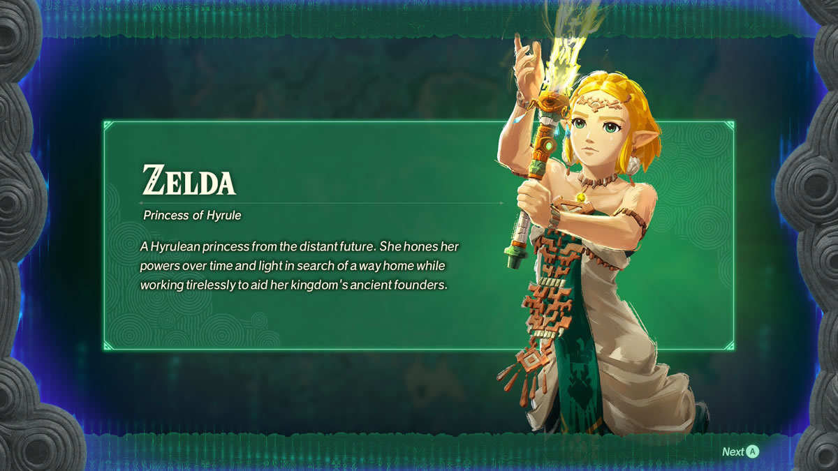 Percebe como isso é bacana demais? Não é mais uma história alternativa, usando como base uma história de um jogo principal da franquia. Temos aqui a história contada, porém não apresentada em detalhes na aventura principal. Conhecemos os grandes personagens do passado, assim como eventos icônicos desse momento de Hyrule dentro do universo de Breath of the Wild e Tears of the Kingdom. Isso é legal demais, e é um salto de desenvolvimento narrativo mais consciente em relação ao trabalho feito em Age of Calamity.