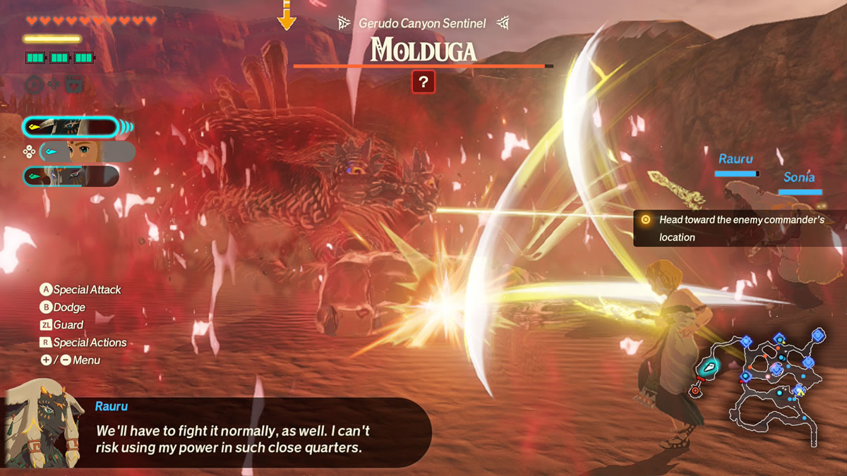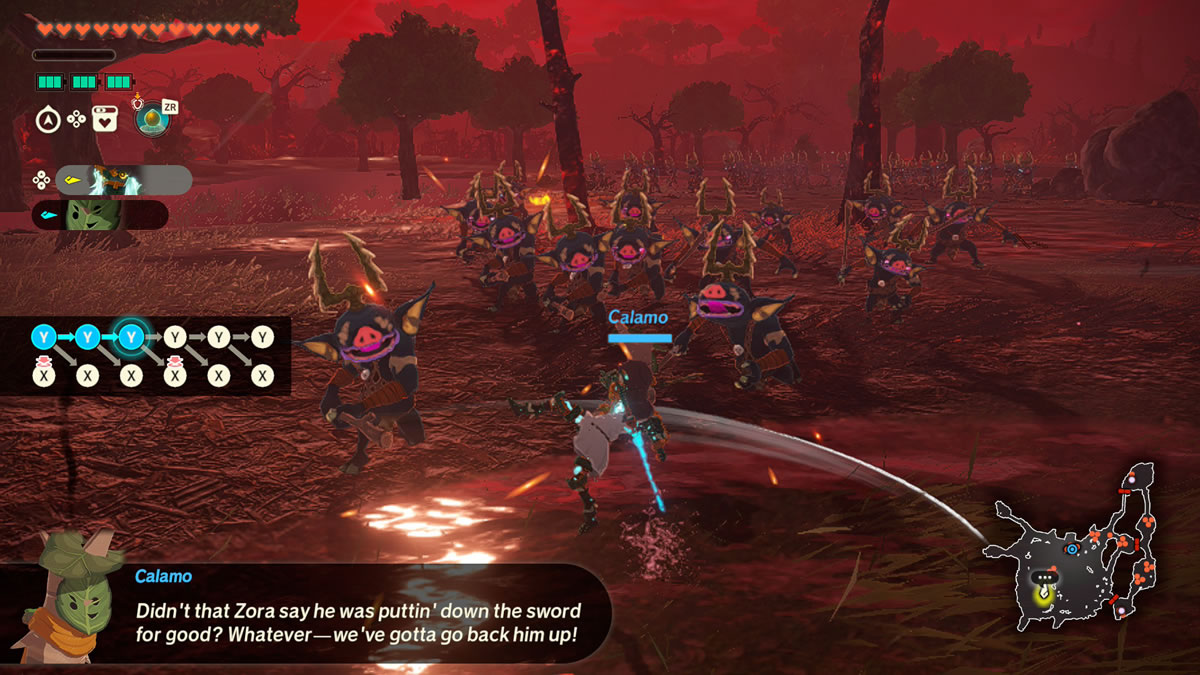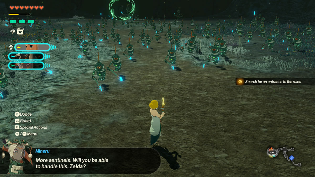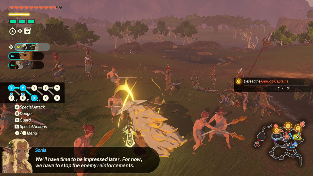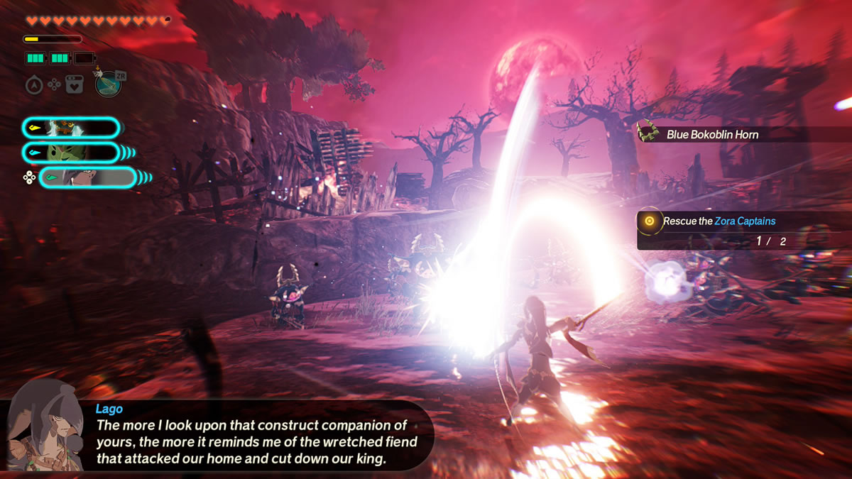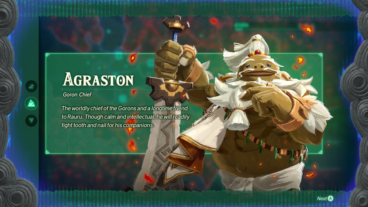 E assim, por mais que os fãs cheguem a Hyrule Warriors: Age of Imprisonment querendo mais de Zelda e de Ganondorf, por ser uma rara narrativa que Link não atua como protagonista, pode haver certa frustração pela trama de Calamo e do Misterioso Construto ter um expressivo tempo de tela. Não me incomodou, apesar de admitir que estava muito mais curioso pelas história dos personagens a qual existem referências em Tears of the Kingdom, como Rauru, Sonia e Mineru, assim como o passados e os antepassados do povos e raças icônicas da série, como os Zoras, Gerudos, Ritos e Gorons.