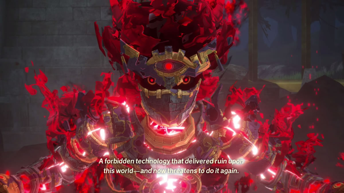 Não quero ter que explicar aqui toda história de Tears of the Kingdom, porém um pequeno contexto se faz necessário. No jogo de 2023, Link e Zelda estão explorando antigas ruínas em Hyrule, quando descobrem uma múmia cadavérica de Ganondorf, que acaba despertando, se tornando o grande vilão do jogo para o Link, ao mesmo tempo que arremessa Zelda ao passado de Hyrule, para as origens do reino, onde ela conhece seus fundadores e toda a tecnologia zonai da época.