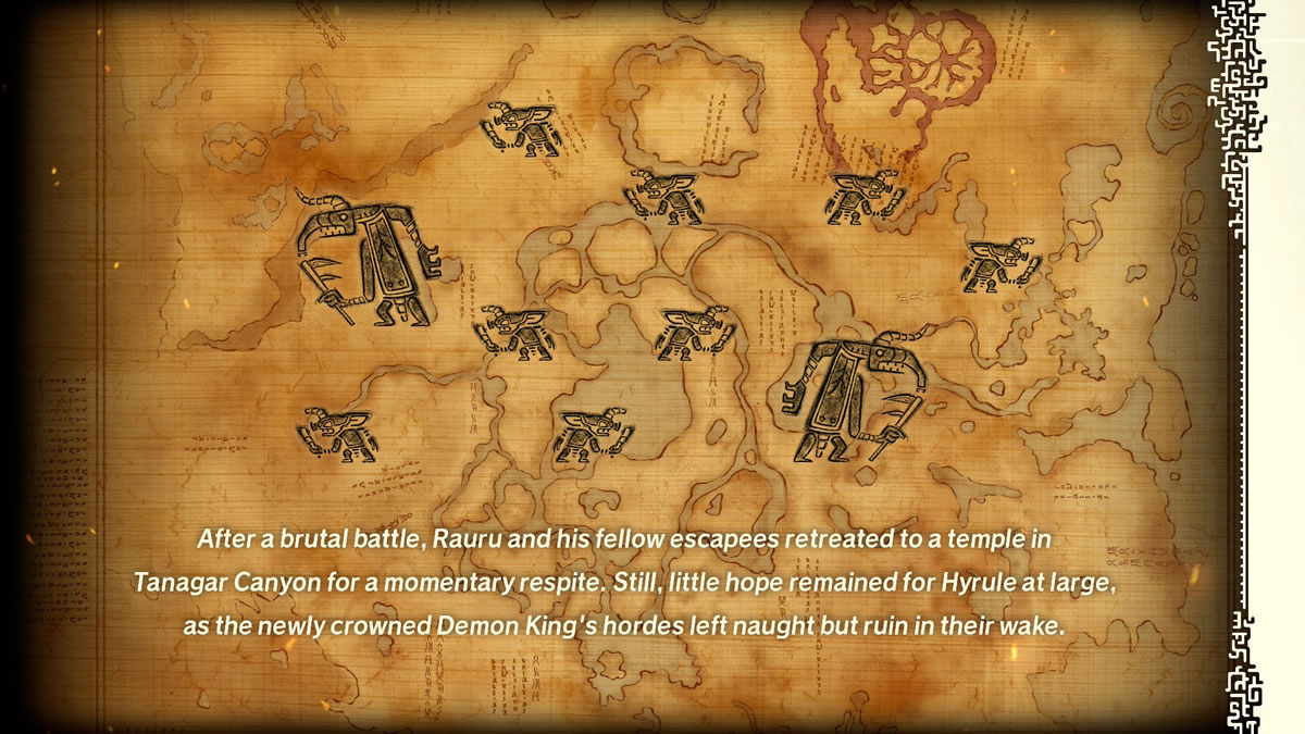 Parte da aventura também se passa tanto no solo de Hyrule, como também tomará os céus e o subsolo desse mundo. O mapa do jogo é enorme, ainda que não permita que seja explorado livremente, porém isso não impede que o jogador tenha a real sensação de quão grande é este reino. O mapa é cheio de atividades, orientando o jogador pela missões principais, opcionais, assim como pequenas tarefas, onde itens coletados jogando as fases podem ser entregues e desbloqueando pequenas recompensas. Existe uma sensação de satisfação ao completar essas pequenas tarefas do mapa.