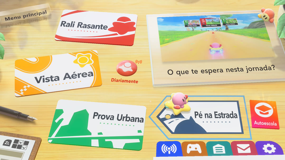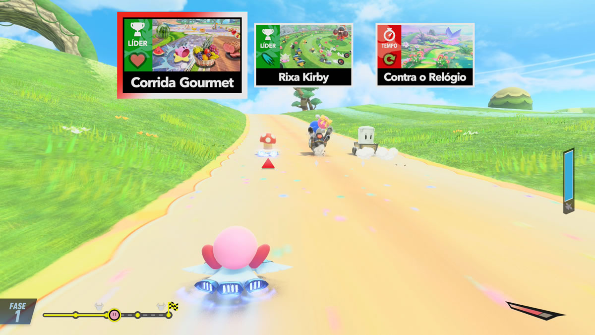 Num primeiro contato, Kirby Air Riders pode soar confuso. O jogo despeja uma quantidade considerável de informações logo de início, com vídeos explicativos, tutoriais e a recomendação explícita de passar pela “autoescola”, um modo de prática. Essa curva inicial pode ser maçante, mas é praticamente obrigatória para que o jogador não se sinta perdido depois.