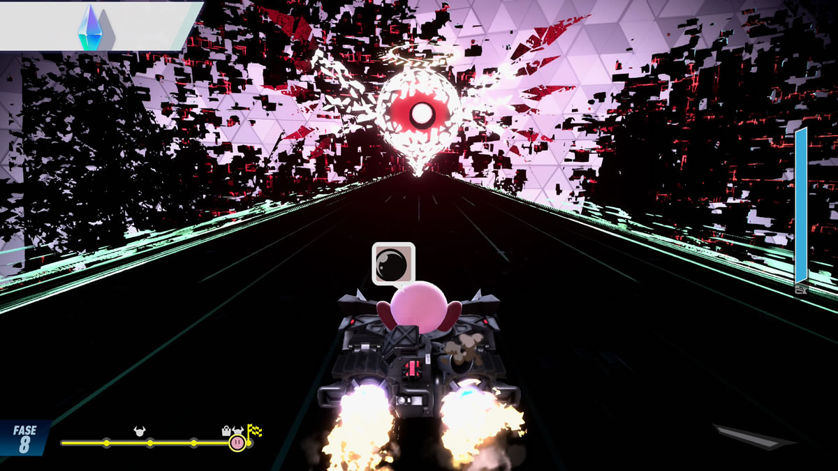 O botão de ação, por exemplo, serve para carregar turbo, fazer curvas fechadas, capturar e arremessar inimigos, assim como absorver habilidades de alguns. Segurar demais desacelera o veículo; soltar no momento certo gera um ganho temporário de velocidade. Esse mesmo princípio se aplica às curvas e ao combate. É um sistema simples na teoria, mas que exige domínio na prática.