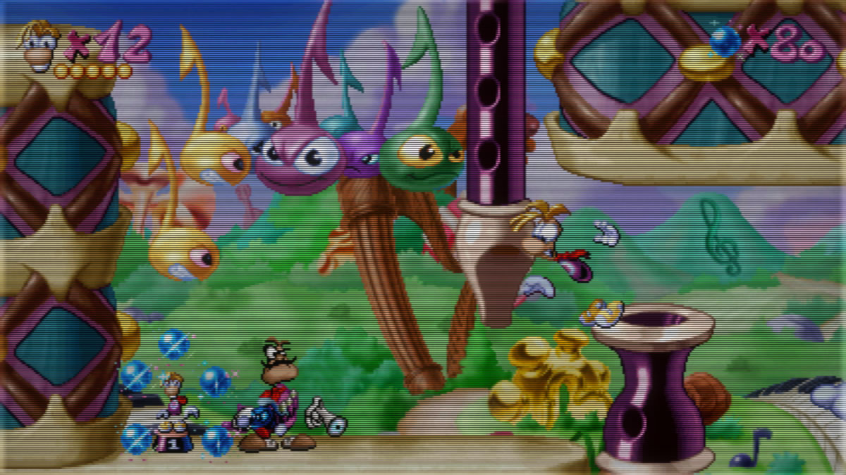 Curiosamente, revisitar esse universo hoje também evidencia um personagem ainda em formação. O design de Rayman aqui é visualmente diferente daquele que seria consolidado anos depois em suas sequências 3D ou quando há seu retorno ao 2D em títulos como Rayman Origins e Rayman Legends. Seu primeiro visual entrega um personagem com um ar mais inocente, menos polido, quase como um rascunho de si mesmo.