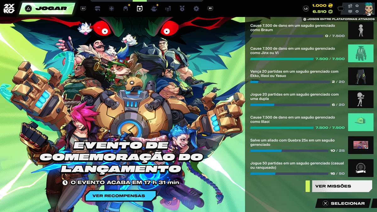 Há também um cuidado importante com localização. 2XKO chega com suporte completo ao português brasileiro, incluindo dublagem, menus e tutoriais traduzidos.